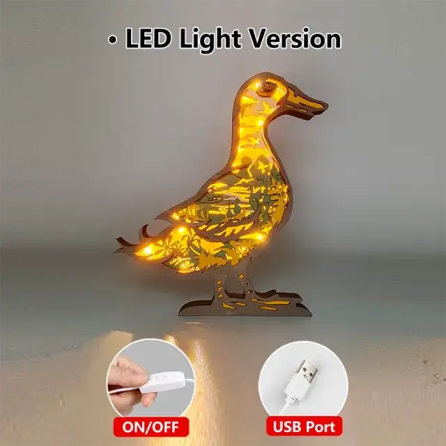 Cute Duck Wooden Animal Statues, for Home Desktop & Room Wall Decor, LED Night Light, Gift for Kids
