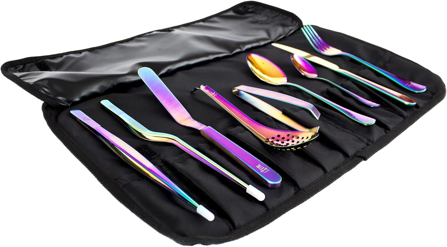 KIT DE EMPLATADO PARA CHEF PROFESIONAL DE 9 PIEZAS/ACERO INOXIDABLE/REPOSTERIA/COCINA/BARRA/COCINA MOLECULAR/MIXOLOGÍA/CHEF MODE (NEGRO)