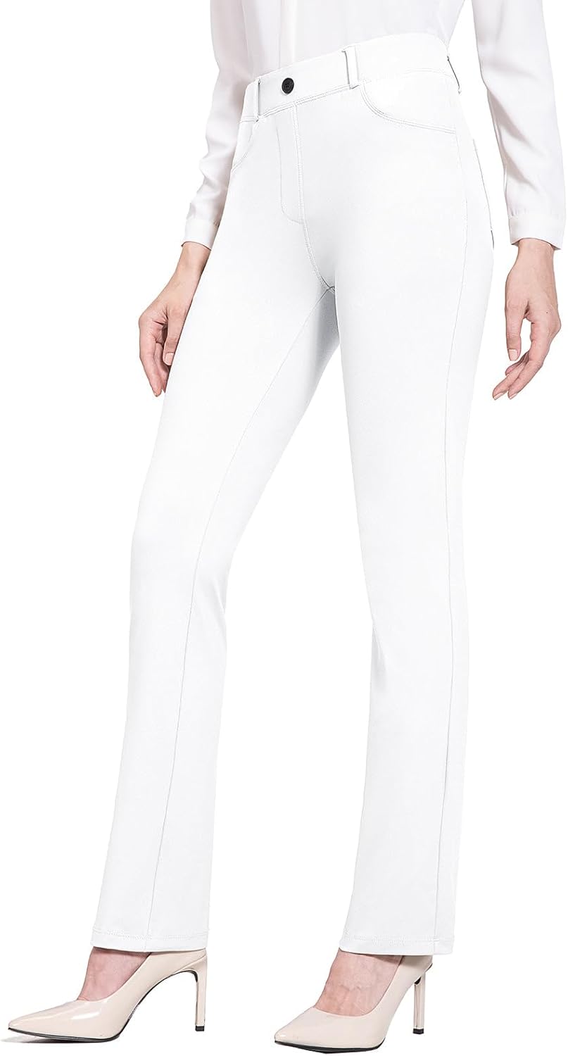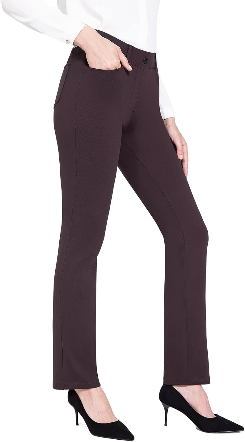 BALEAF - Pantalones de vestir de yoga para mujer, de 29 pulgadas/31 pulgadas, elásticos, pantalones de trabajo, informales, para negocios, pierna recta, corte de bota, con bolsillos