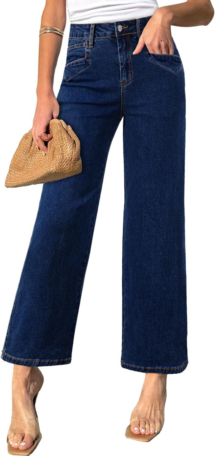 HDLTE Pantalones de Mezclilla Rasgados para Mujer, Pantalones de Mezclilla Holgados de Cintura Alta, Pantalones Rectos de Pierna Ancha, Pantalones de Calle Y2k