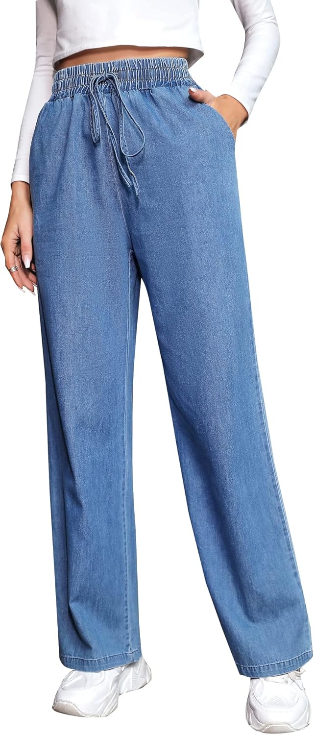 Trendy Queen - Pantalones deportivos de pierna ancha para mujer, pantalones holgados de cintura alta, con cordón, atléticos, acampanados, con bolsillos