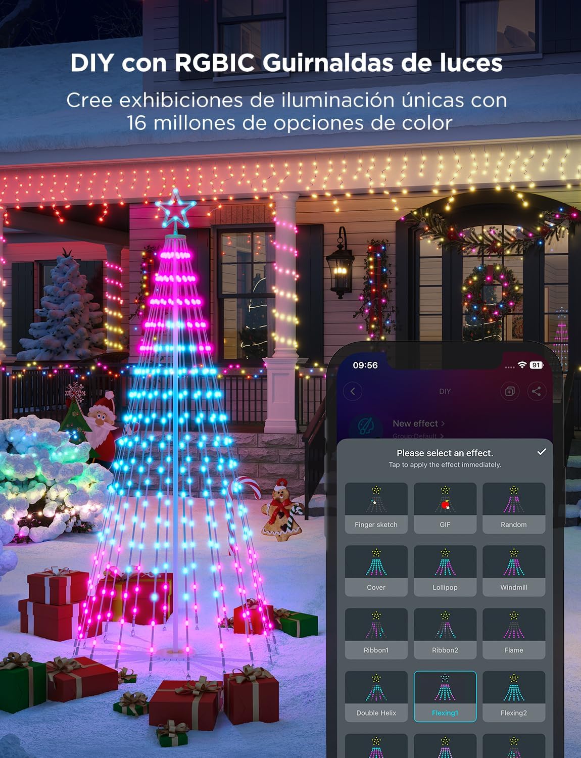 Govee Christmas Cone Tree Lights, 1.82m 316 LED RGBIC Luces de Cadena con Control de APP Inteligente, 82+ Modos de Escena, IP67 Resistente para Decoración Halloween y Navidad, Modo Música, Negro