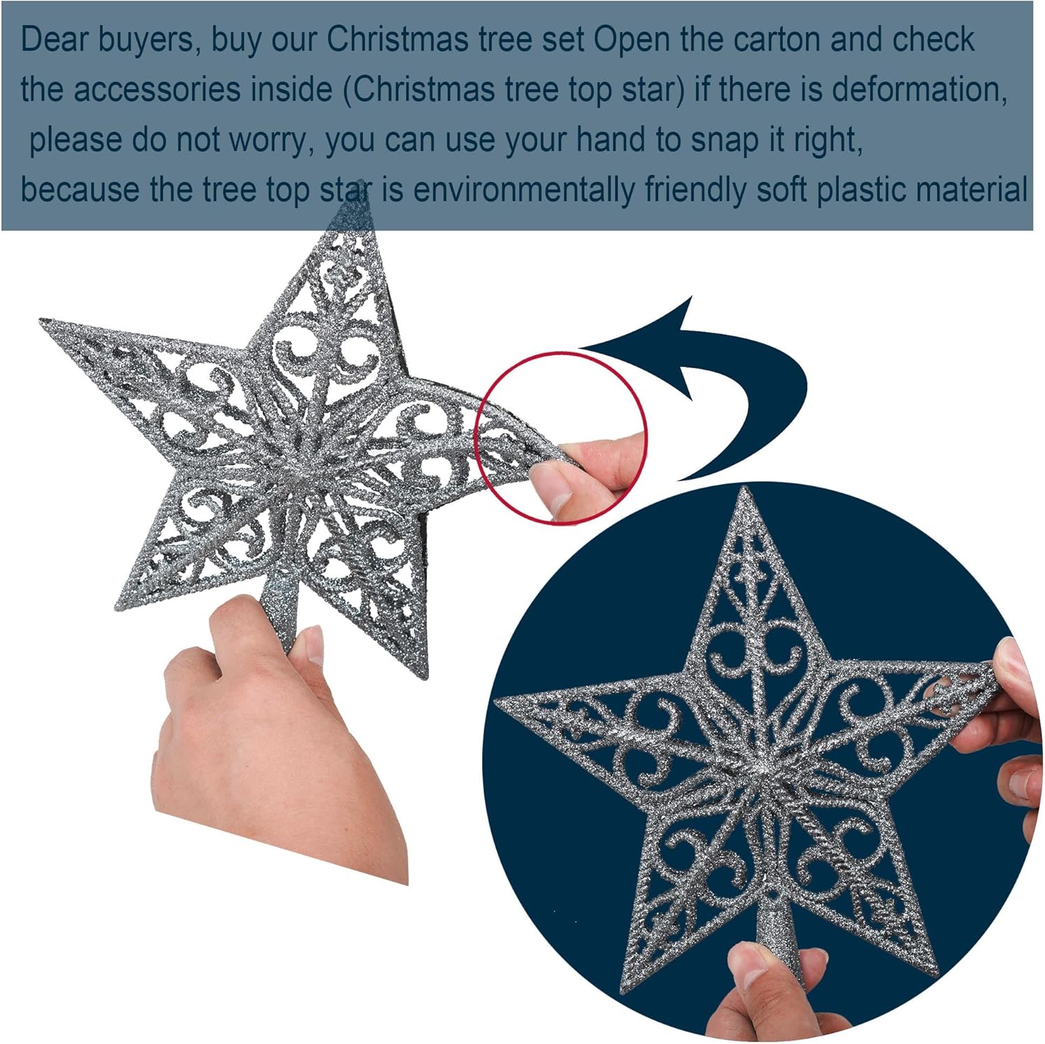 KTKDE Árbol de Navidad artificial de abeto de 7 pies, árbol de Navidad verde realista con 1.450 puntas de árbol, 300 postes de luz LED alimentados por pilas, pentáculo dorado de 7.8 pulgadas, perfecto