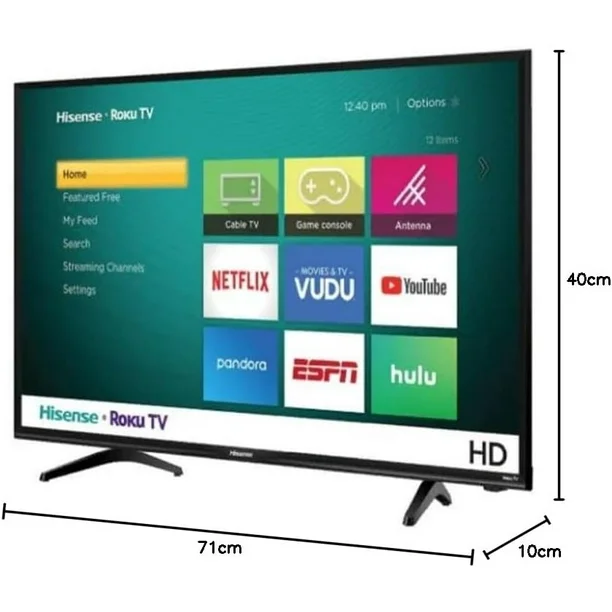 Tamaño de pantalla: 32 pulgadas. Resolución: HD (1366 x 768), con colores vibrantes y buen contraste. Sistema Operativo: ROKU TV, con acceso a miles de aplicaciones y canales de streaming. Conectividad: WiFi, 2 puertos HDMI, 1 puerto USB, entrada para antena/cable. Audio: Tecnología DTS Studio Sound para un sonido envolvente y claro. Compatibilidad: Funciona con Alexa y Google Assistant.