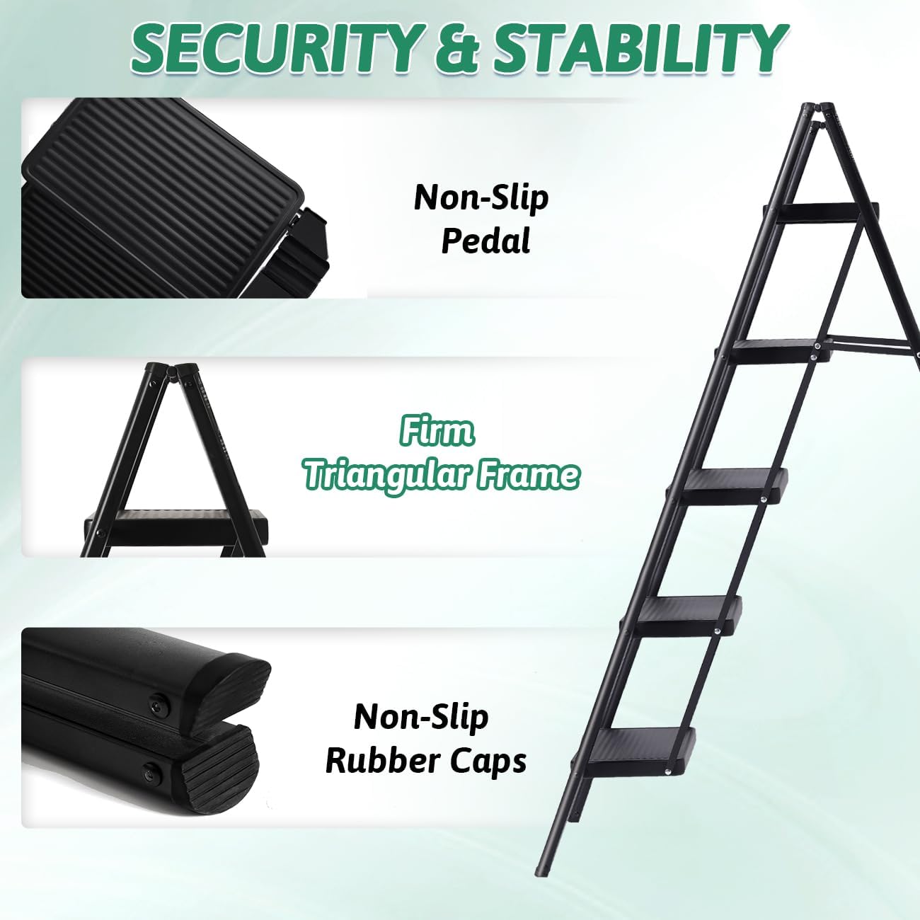 Escalera plegable de 5 peldaños de carga de 350 libras para el hogar/interior, escalera alta de cocina/clóset para adultos, escalera ligera compacta con pedal ancho antideslizante, color