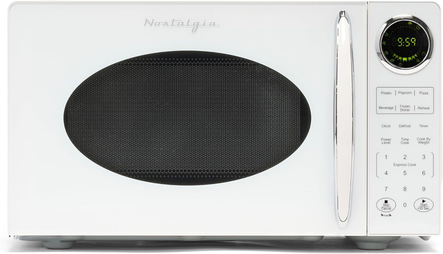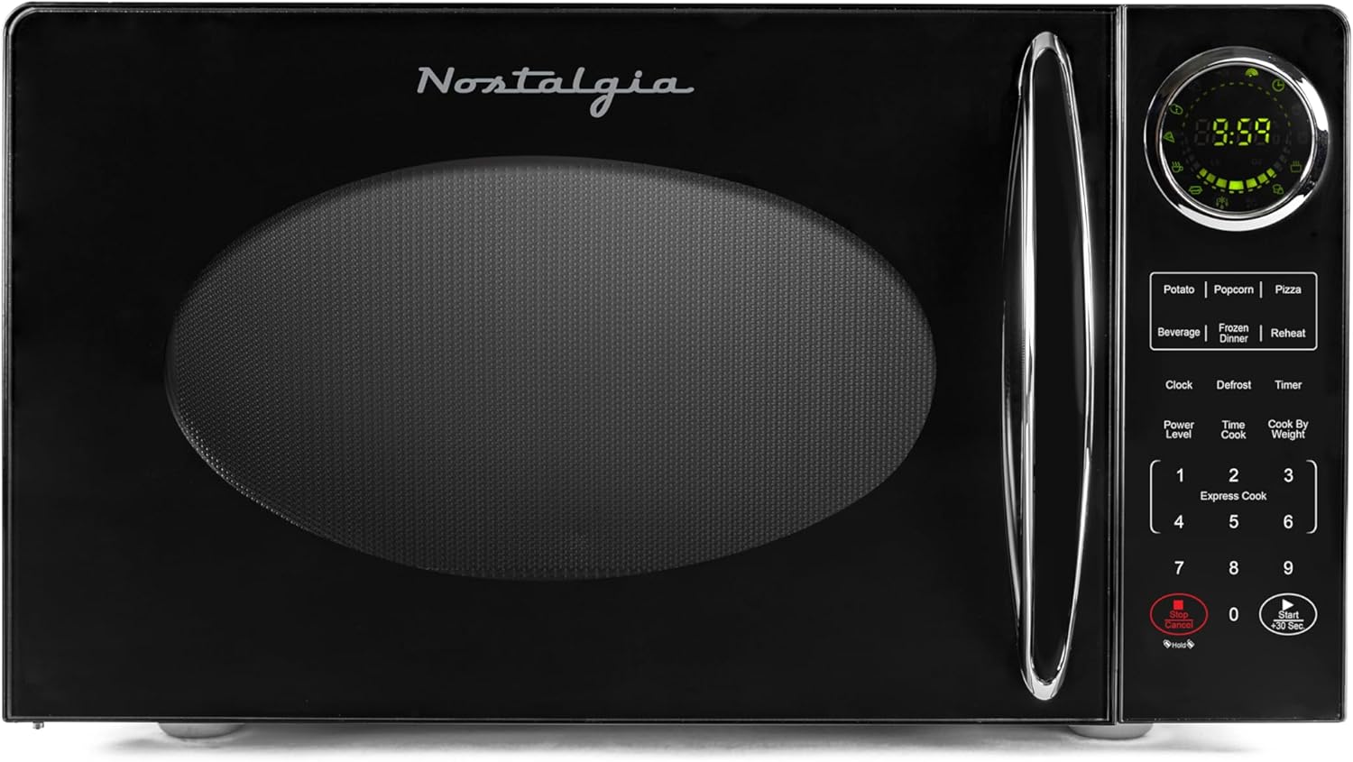 Nostalgia - Horno de microondas retro para encimera de mediados de siglo, tamaño grande de 900 W, 0.9 pies cúbicos, 8 ajustes de cocción preprogramados, reloj digital, electrodomésticos de cocina,