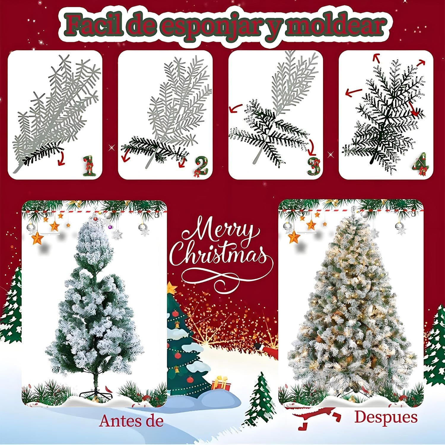 - 🎄⛄🎁【Base Metálica para Facilitar el Montaje】El árbol de Navidad viene con una base metálica reforzada que incluye cómodas ramas articuladas para facilitar el montaje y desmontaje. El árbol está dividido en 3 secciones que se insertan fácilmente entre sí.