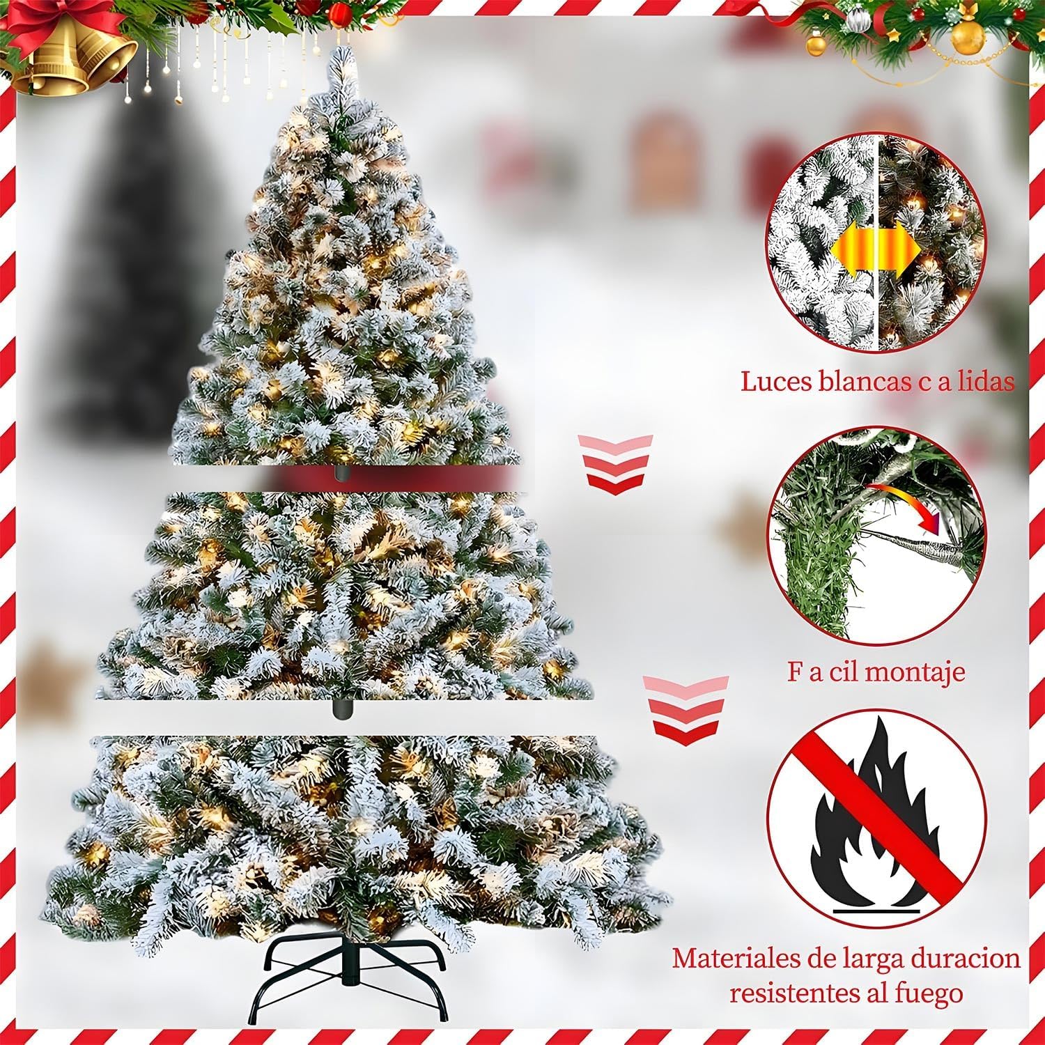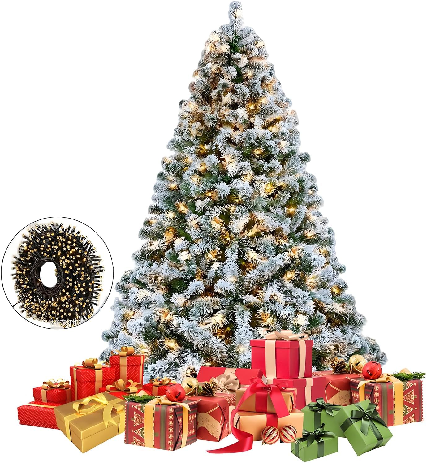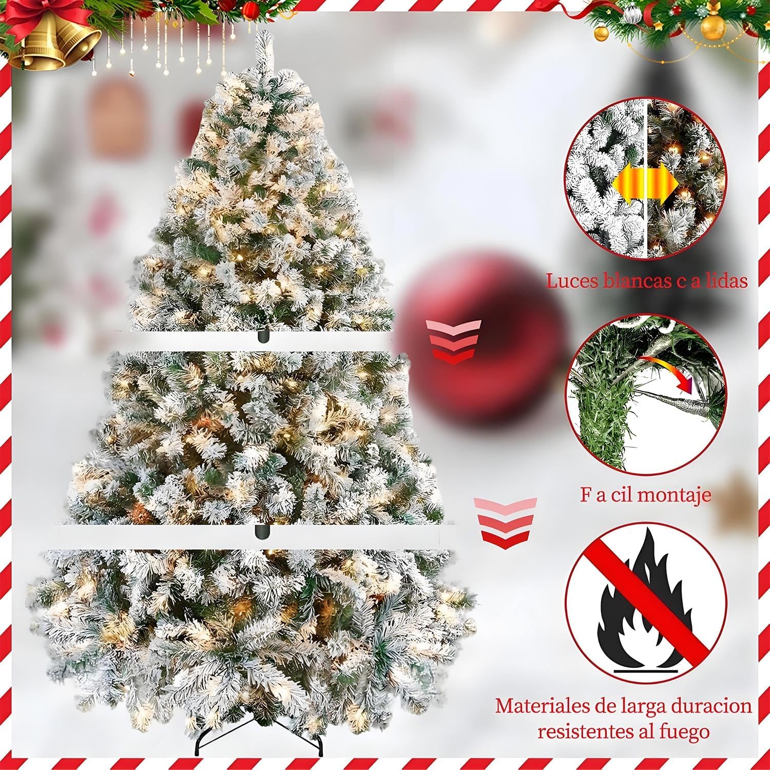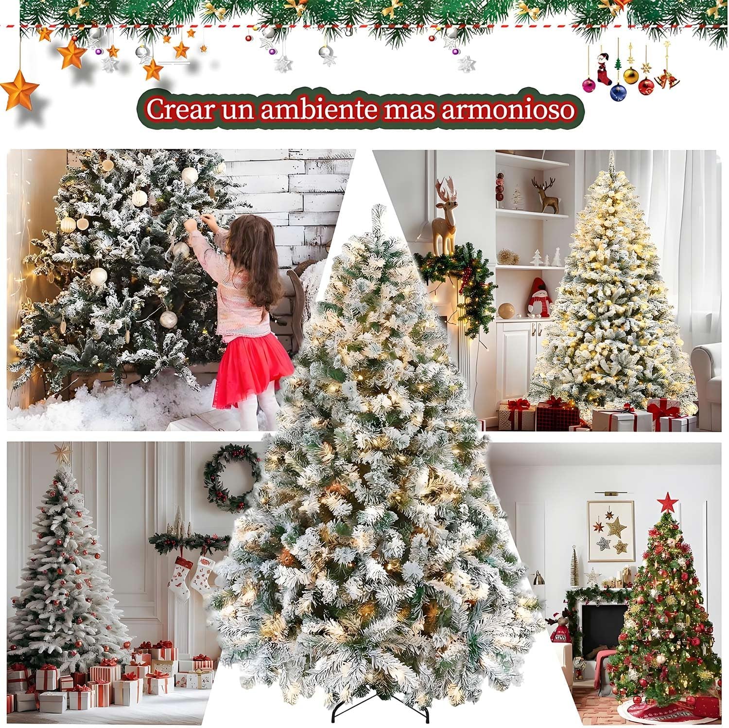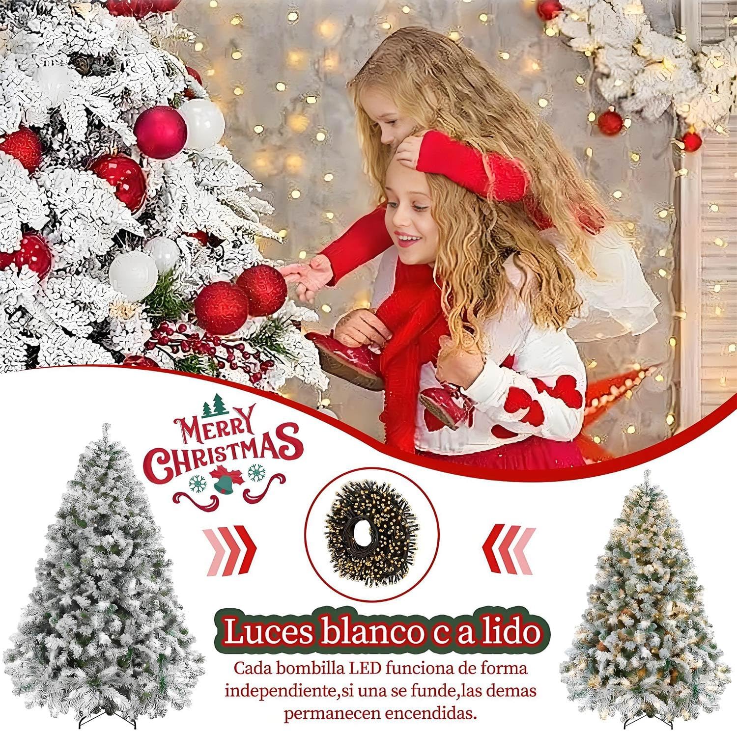 - 🎄⛄🎁【Árbol de Navidad con Copos de Nieve】El árbol de Navidad de 2.1 metros con 1200 ramas incluye 20 metros de 200 luces LED cálidas de larga duración, cálidas y acogedoras para crear un ambiente navideño brillante y duradero. Las ramas están cubiertas de copos de nieve, que son muy realistas y completan la sensación de esta Navidad, creando un acogedor ambiente navideño helado.