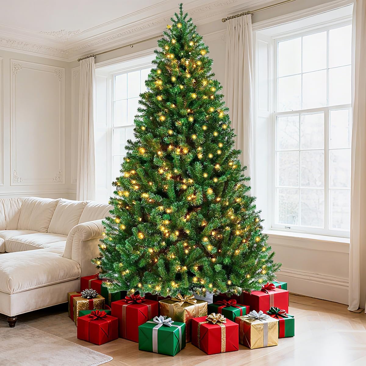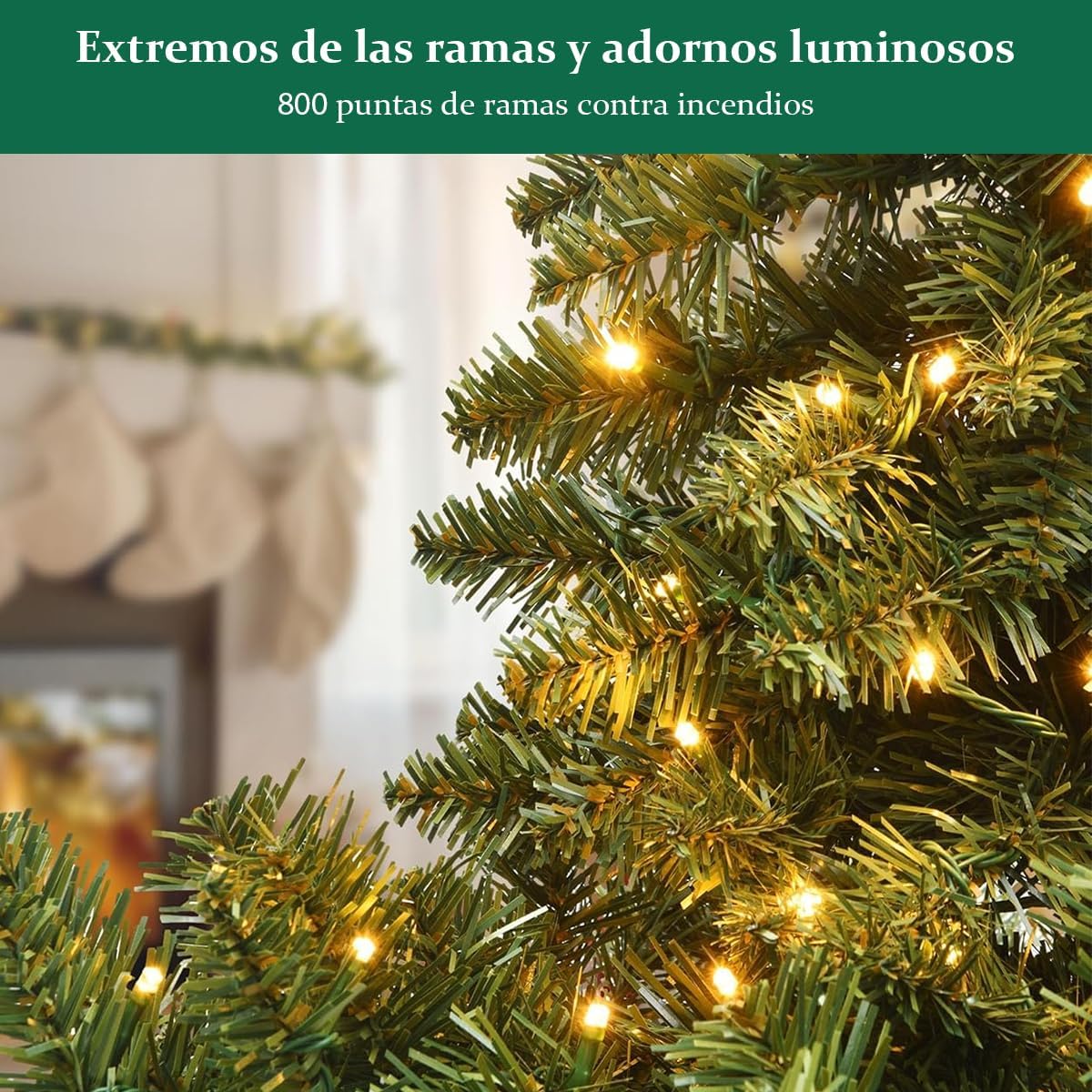 • Apariencia Frondosa y Realista: Diseñado para impresionar, este pino navideño artificial presenta un perfil completo con numerosas puntas de ramas de PVC de alta calidad. Su follaje denso y natural ofrece un aspecto exuberante y auténtico sin el desorden de las agujas de pino reales, proporcionando el fondo perfecto y resistente para todos tus adornos navideños favoritos, desde esferas navideñas hasta las preciadas reliquias familiares