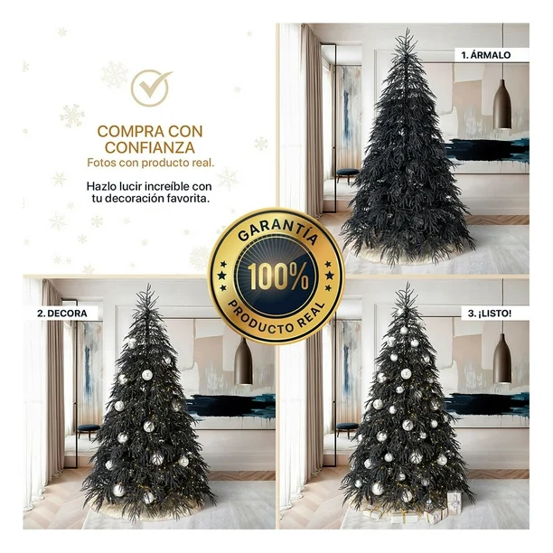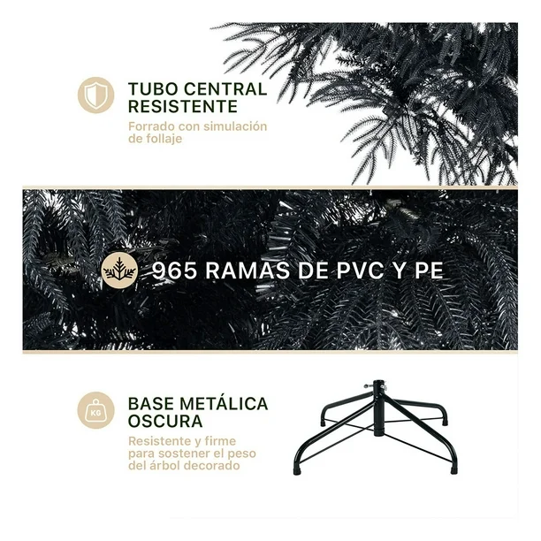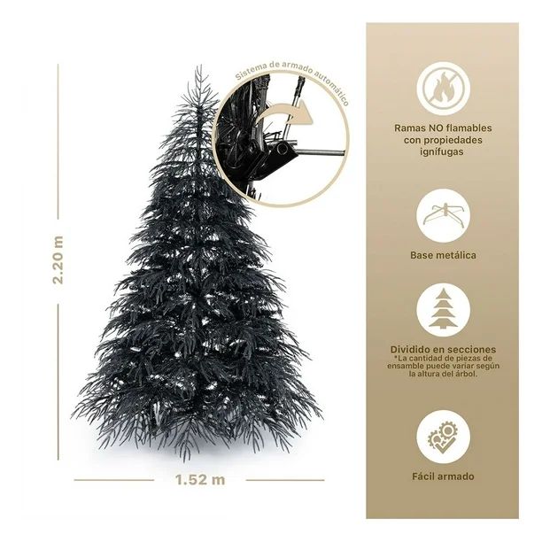 Árbol de Navidad Frondoso y Realista Pino Navideño con Ramas Mixtas Esquimal (Negro , 2.20 m)
