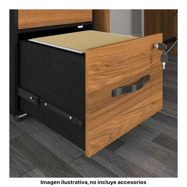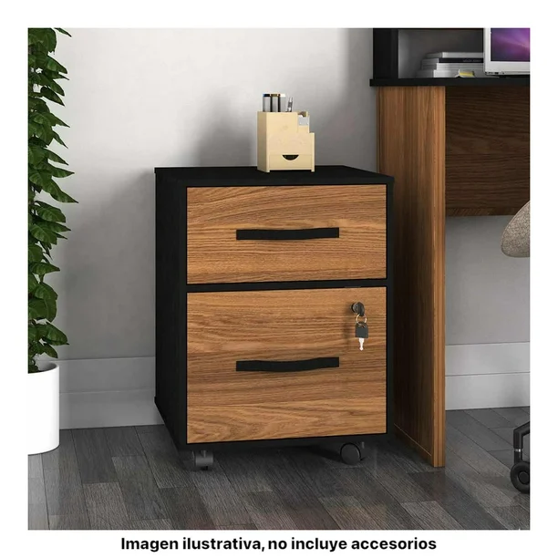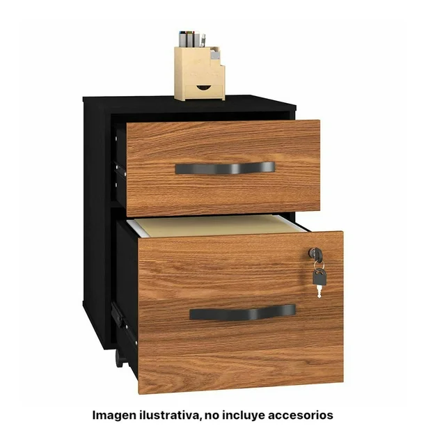Archivero Esencial 2 Cajones para tamaño carta, un cajón con Llave, 4 Ruedas, Tablero Laminado Texturizado Playcon