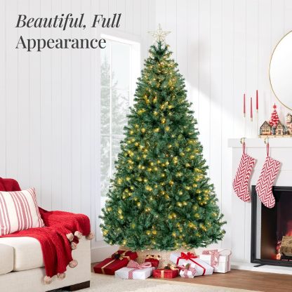 Best Choice Products - Árbol de Navidad artificial de pino preiluminado de 1,83 metros de alta calidad para el hogar y la oficina, con 1000 puntas de rama, 250 luces, bisagras de metal y base plegable