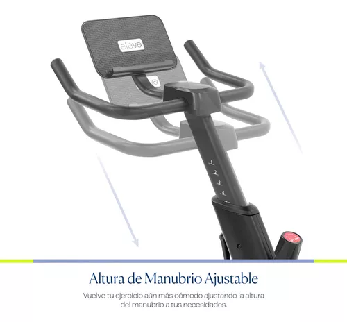 La bicicleta eleva está diseñada para la comodidad y versatilidad, e incluye un práctico soporte para Tablet. Esto te permite disfrutar de entretenimiento o seguir tus programas de entrenamiento favoritos mientras te ejercitas, manteniendo tu Tablet al alcance de la vista de manera segura y accesible durante tus sesiones de spinning