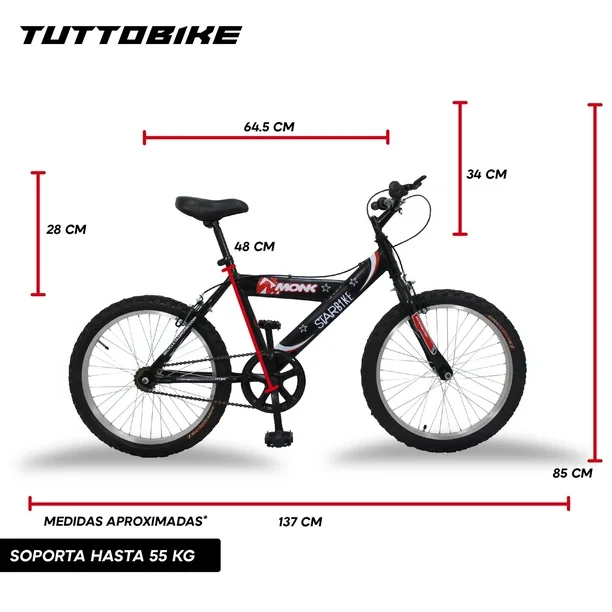 Bicicleta Infantil Económica DE Montaña Monk Starbike Rodada 20 1 Velocidad Negro