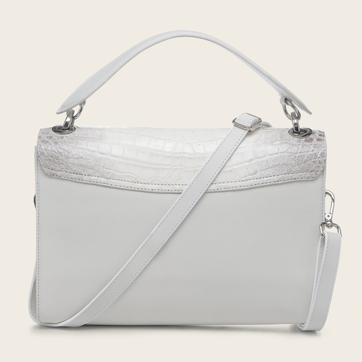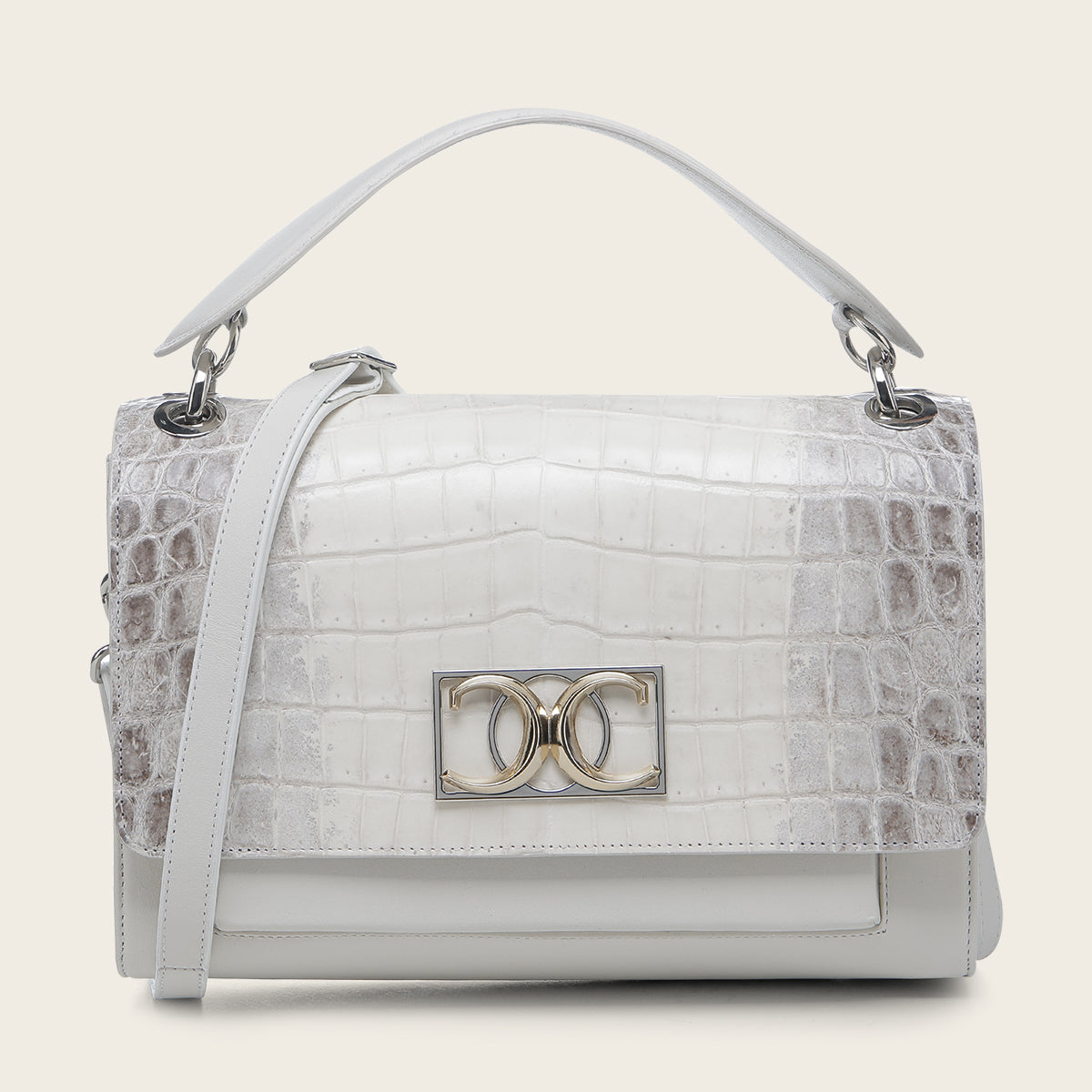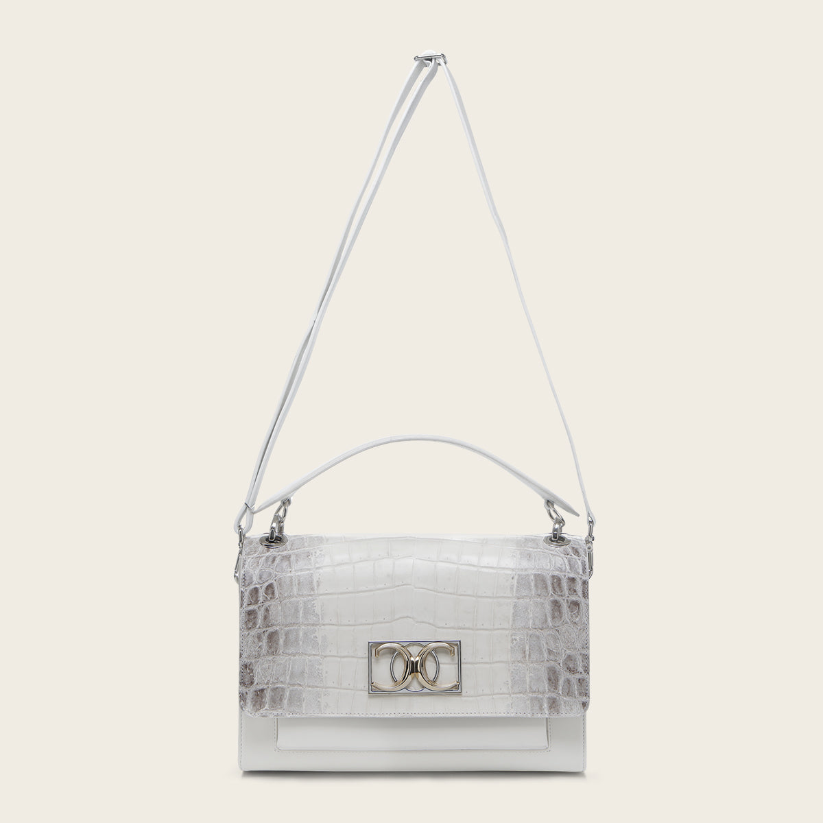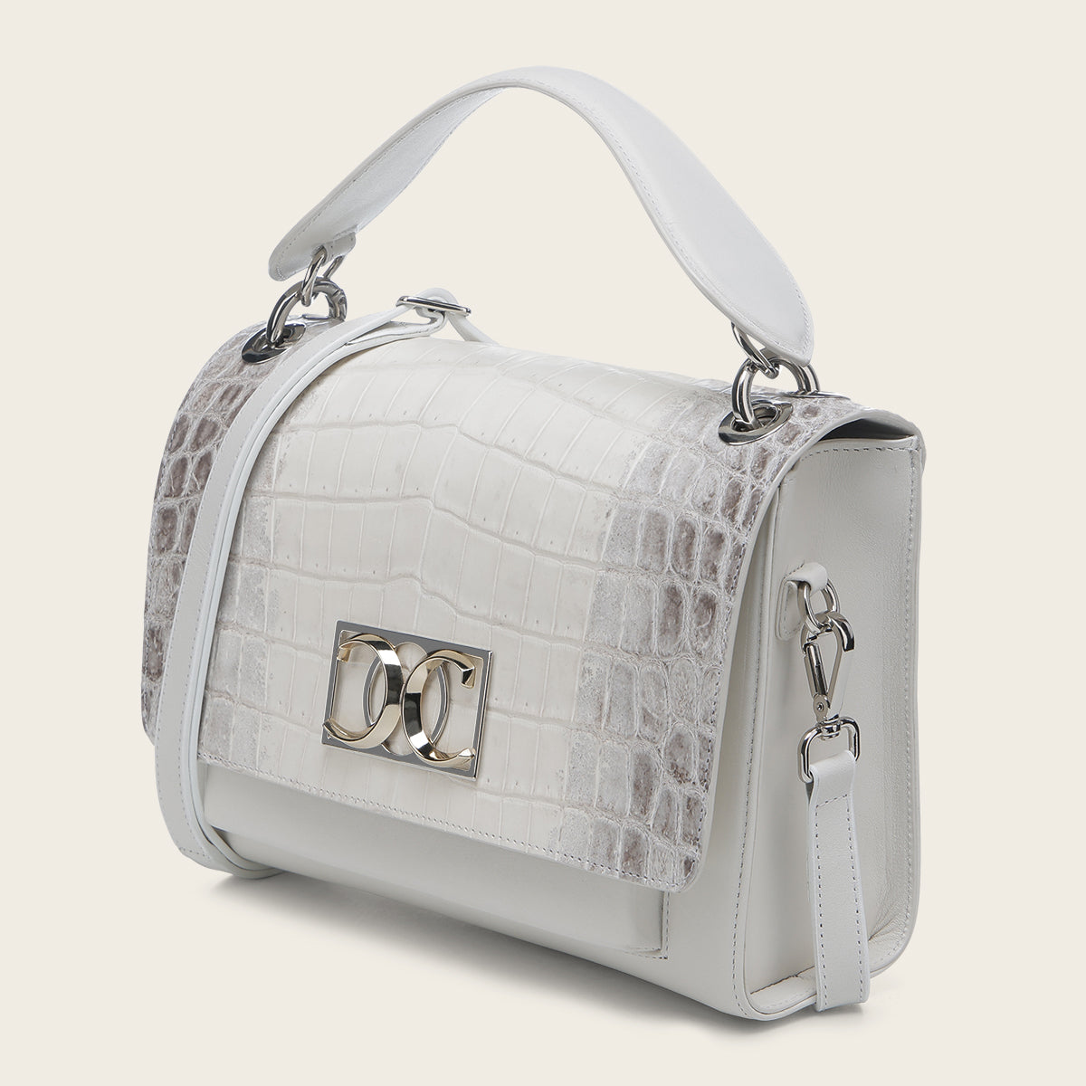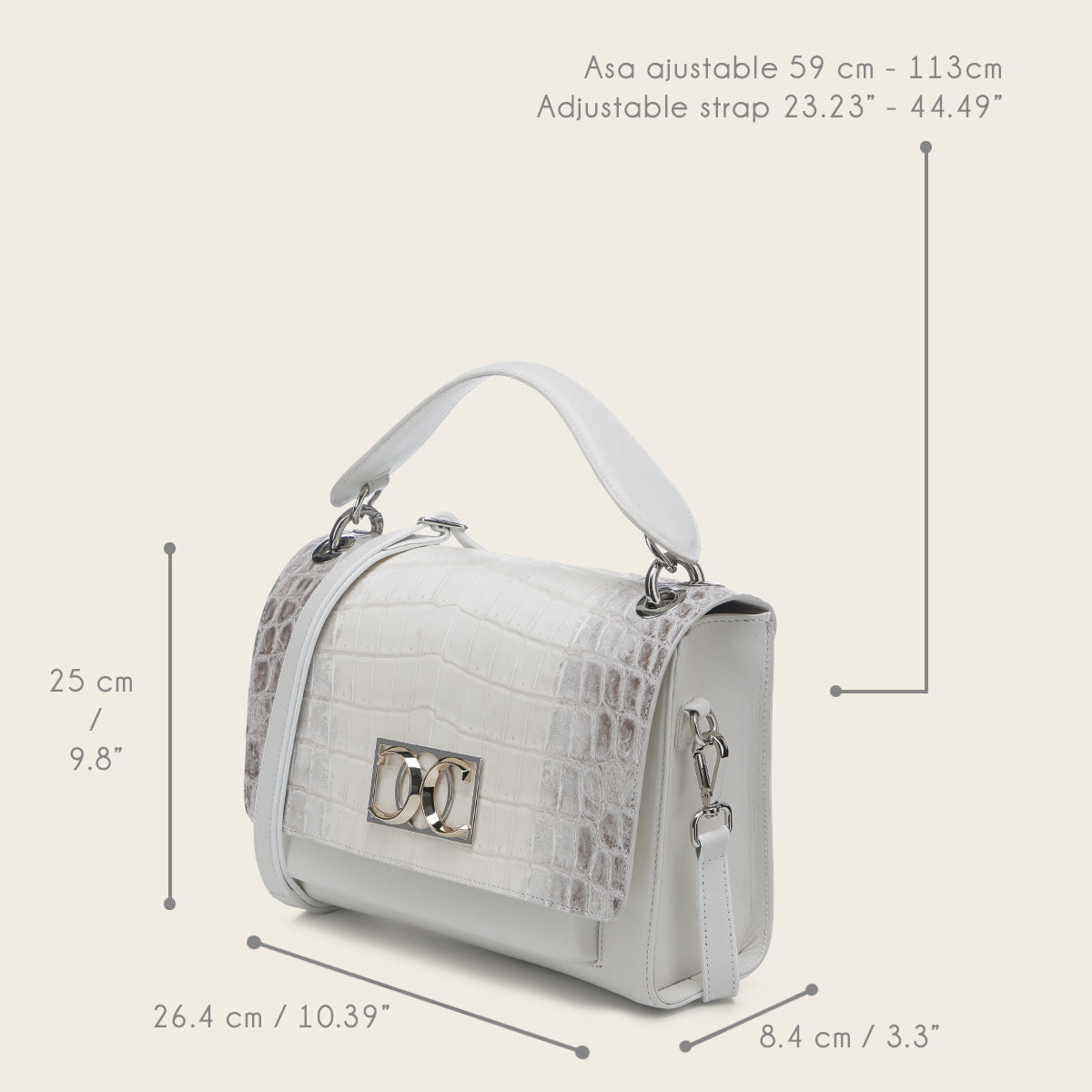 Bolso de mano para dama en piel genuina de niloticus y piel de bovino. Al frente presenta herraje de monograma Cuadra. Cuenta con un compartimento frontal y en su interior un compartimento asegurado con cierre. Con asa corta y asa larga desmontable y ajustable. Asegurado con imanes.