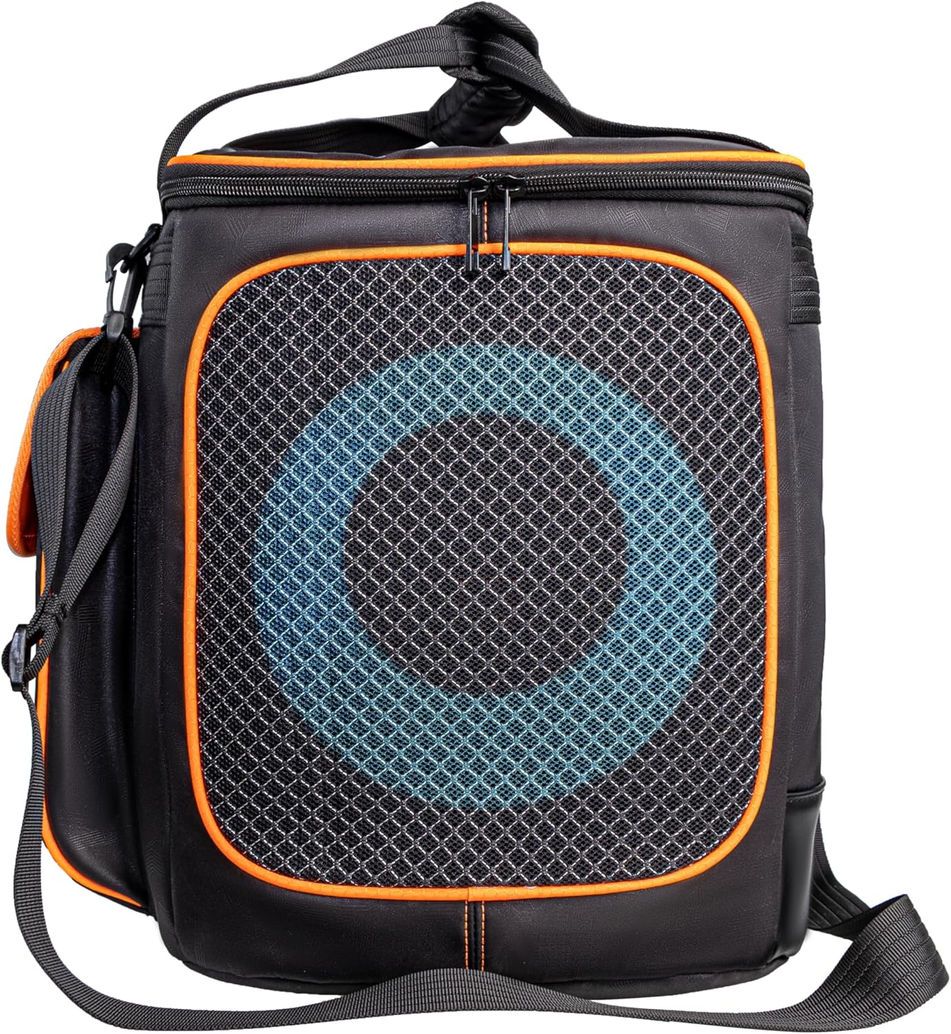 - Hecha de una mezcla premium de polietileno, poliéster de alta densidad, forro de terciopelo y nailon reforzado, esta funda ofrece una protección completa de 360°. Su diseño a prueba de salpicaduras, costuras resistentes y estructura absorbente de golpes protegen tu altavoz de golpes, arañazos, polvo y humedad ligera, para que puedas llevar la fiesta a cualquier lugar con confianza.
