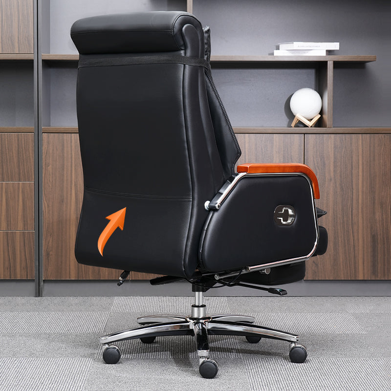 Cameron, a stylish ergonomic office chair, has a soft leather interior and hand-carved wooden armrests. You can sit for a long time without fatigue due to the big and tall design. The latex-cushioned seats allow you to enjoy the massage function comfortably. You can move easily with the flexible castors, and adjust the seat height freely to meet your needs.