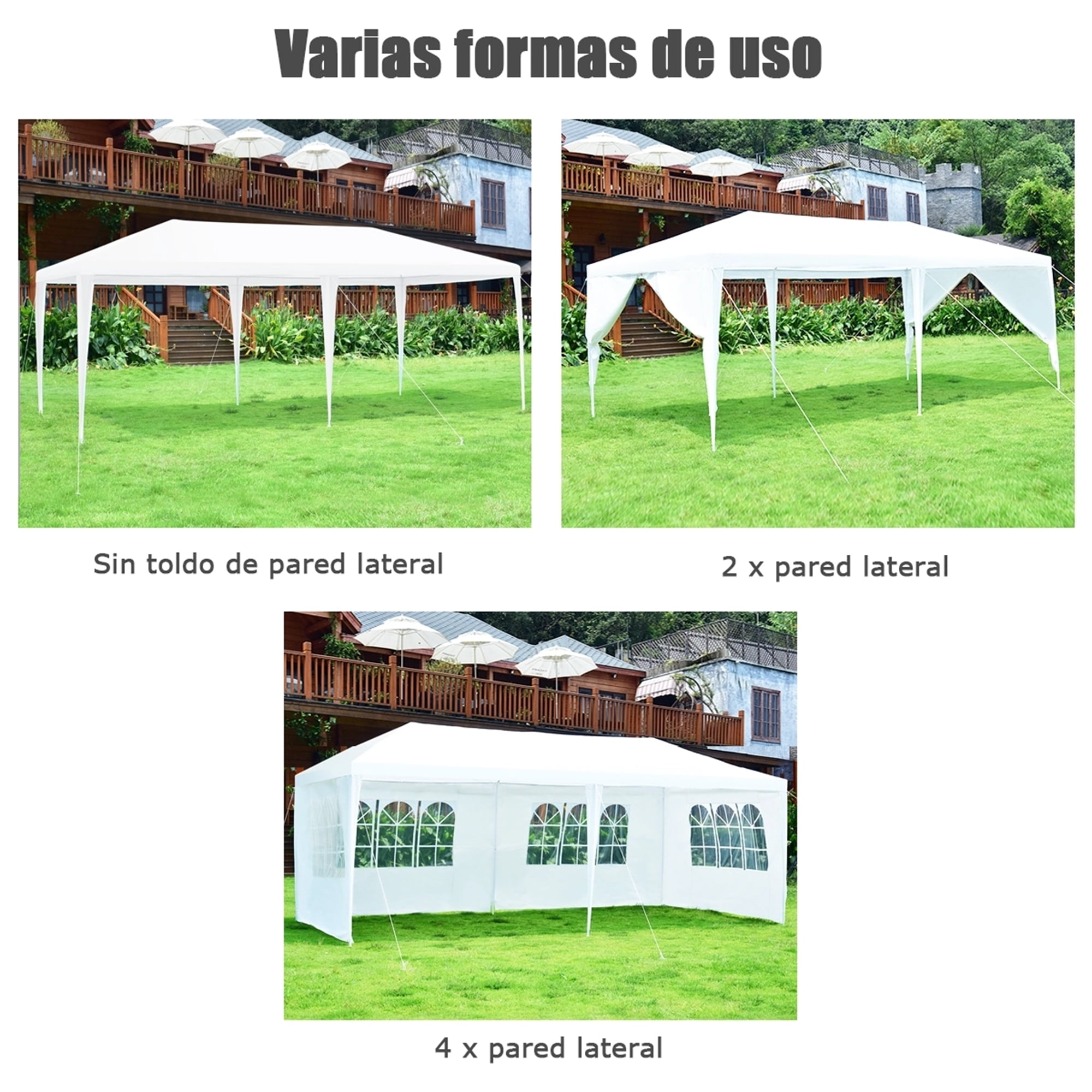 Carpa de Exterior Costway Entoldado para Bodas Portátil con 4 Paredes Removibles Glorieta para Eventos Refugio Patio Blanco 6 x 3 x 2,5 m