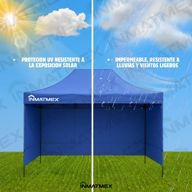La Carpa Toldo 3x4.5 Plegable Paredes Tejido Impermeable 600d Color Azul de la marca Jardimex es el complemento perfecto para tus eventos al aire libre. Su diseño retráctil y plegable te permite llevarla a cualquier lugar de forma cómoda y sencilla. Además, su tejido impermeable de alta calidad garantiza que estarás protegido de la lluvia y la nieve.