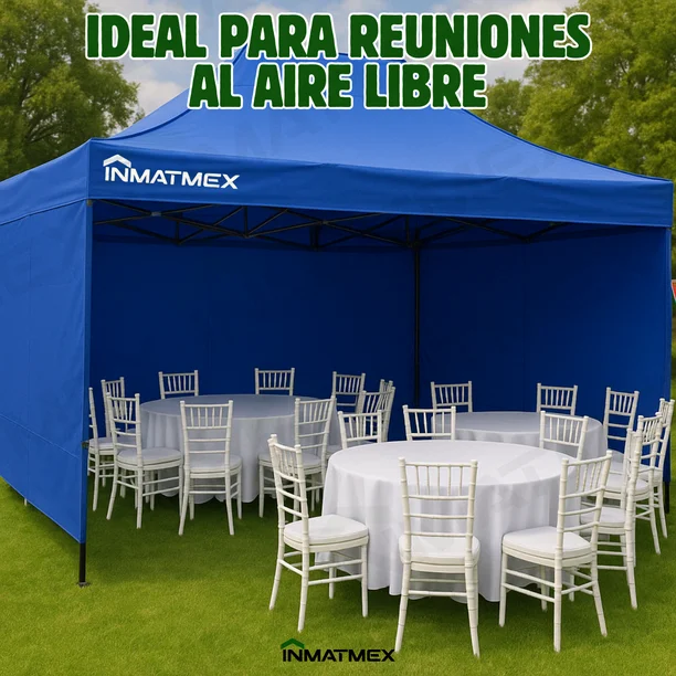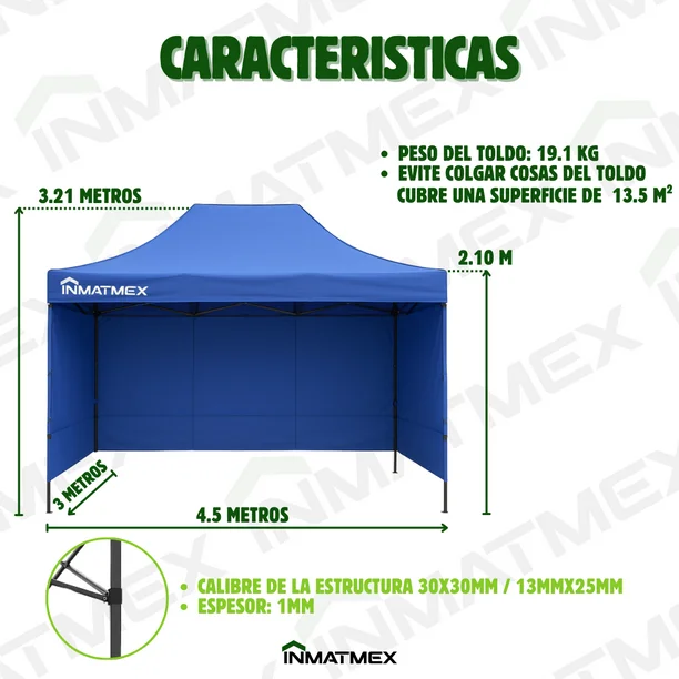 - Con una altura de 305 cm y un ancho de 450 cm, esta carpa ofrece un amplio espacio para tus invitados. Incluye paredes para mayor privacidad y protección contra el viento. Su estructura de acero resistente asegura su durabilidad y estabilidad. Además, cuenta con protección UV para cuidar tu piel de los rayos solares. Ideal para fiestas, ferias, mercados y más. No dejes pasar la oportunidad de adquirir esta carpa de alta calidad y disfrutar al máximo de tus eventos al aire libre