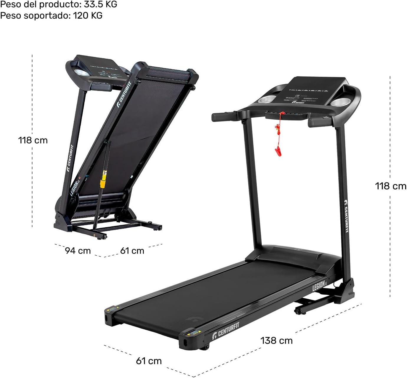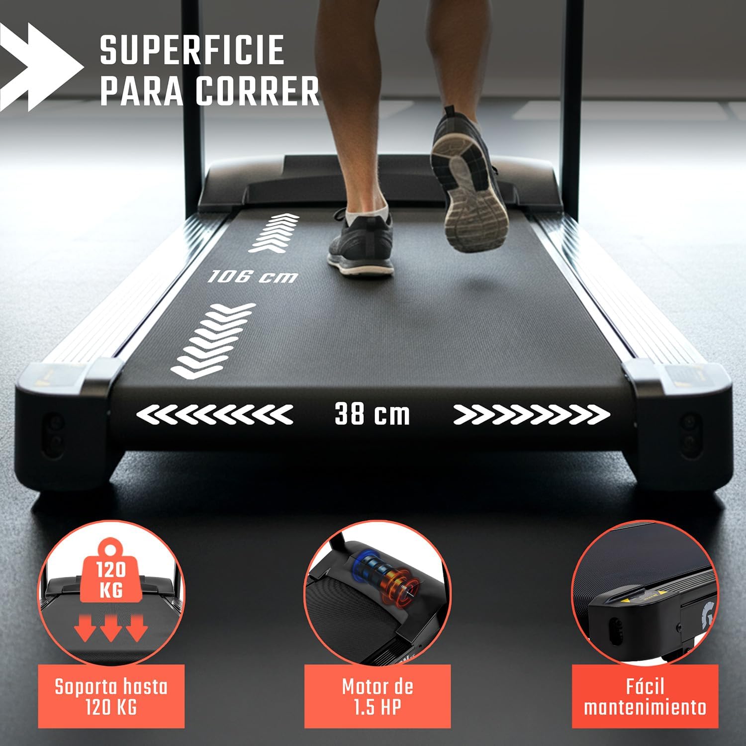 - Superficie para correr: 106 x 38 cm