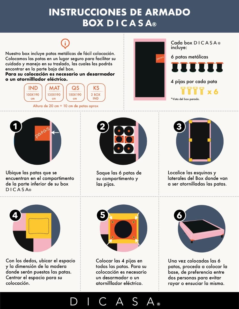 - Box Dicasa Plomo sirve como base para cualquier colchón. Consta de 2 boxes individuales.