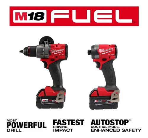 Nuestro kit combinado de 2 herramientas M18 FUEL™ tiene el taladro más potente, incluido el modo de control AutoStop™ para mayor seguridad y el destornillador de impacto de conducción más rápida. Incluye un taladro percutor M18 FUEL™ de 1/2", un destornillador de impacto hexagonal M18 FUEL™ de 1/4", (2) paquete de baterías M18™ REDLITHIUM™ XC de 5,0 Ah, con un cargador M18™/M12™ y un estuche de transporte. Nuestro taladro atornillador M18 FUEL™ de ½” es el taladro más potente y la solución más compacta de la industria. El motor sin escobillas POWERSTATE™ ofrece la mayor potencia bajo carga para completar orificios de autoalimentación de 2-9/16" en materiales densos para aumentar la productividad y la capacidad. Con solo 6,9" de largo, este es el taladro más compacto de su clase. El modo de control AUTO STOP™ ofrece mayor seguridad para el usuario al evitar la sobrerotación en una unión con el mejor tiempo de reacción de la industria. Nuestro destornillador de impacto hexagonal M18 FUEL™ de ¼” es el destornillador de impacto más POTENTE y DE CONDUCCIÓN MÁS RÁPIDA. MÁXIMO CONTROL DEL GATILLO Nuestro motor sin escobillas POWERSTATE™ ofrece una potencia inigualable para una gama completa de capacidades para completar la más amplia variedad de aplicaciones. Aumente la productividad en el lugar de trabajo con la velocidad de conducción más rápida sin sacrificar la potencia ni el control. proporcionando una aceleración suave para sujetadores pequeños para evitar que se pelen los tornillos o se dañen los materiales. Nuestro kit combinado de 2 herramientas M18 FUEL™ es parte del sistema M18™ que es totalmente compatible con más de 200 soluciones.