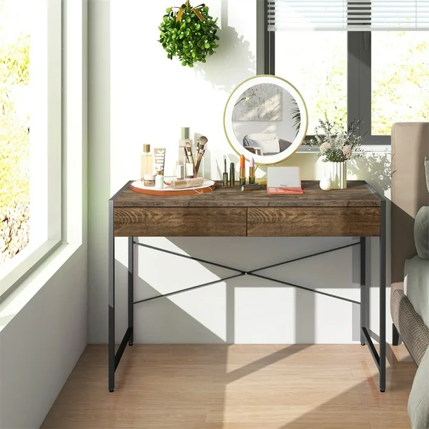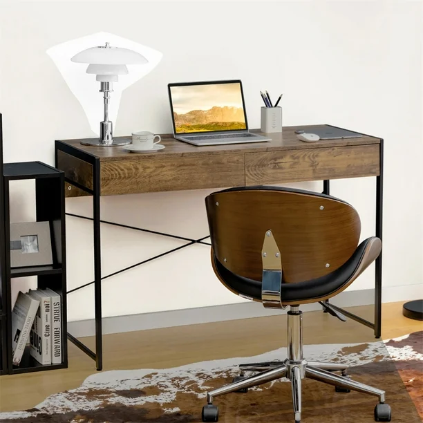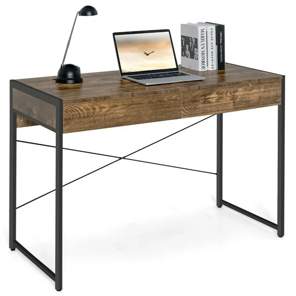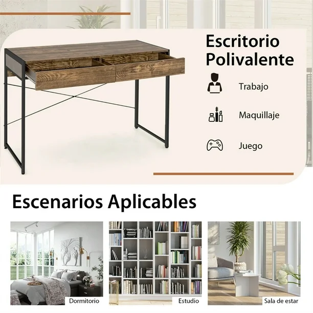 Nuestro escritorio para oficina te hará trabajar cómodamente! Hecho de tablero de partículas con la estructura en acero, es duradero y anticorrosión. Las almohadillas antideslizantes garantizan la estabilidad y protegen el suelo. La superficie es espaciosa para poner ordenador, monitor, etc. y en los 2 cajones se pueden almacenar los documentos importantes. Es ideal para trabajar, jugar, escribir, estudiar, etc. La excelente elaboración y las vetas de la madera añaden un toque elegante a la casa. Es perfecta para dormitorio, estudio, oficina, etc.