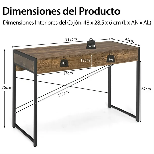 - Amplio espacio: el escritorio mide 112 x 48 cm y es espacioso para poner ordenador, libros, plantas y otro material de oficina. Además, hay 2 cajones para mantener los documentos importantes a salvo. Las guías de metal garantizan una fácil apertura y cierre del cajón.