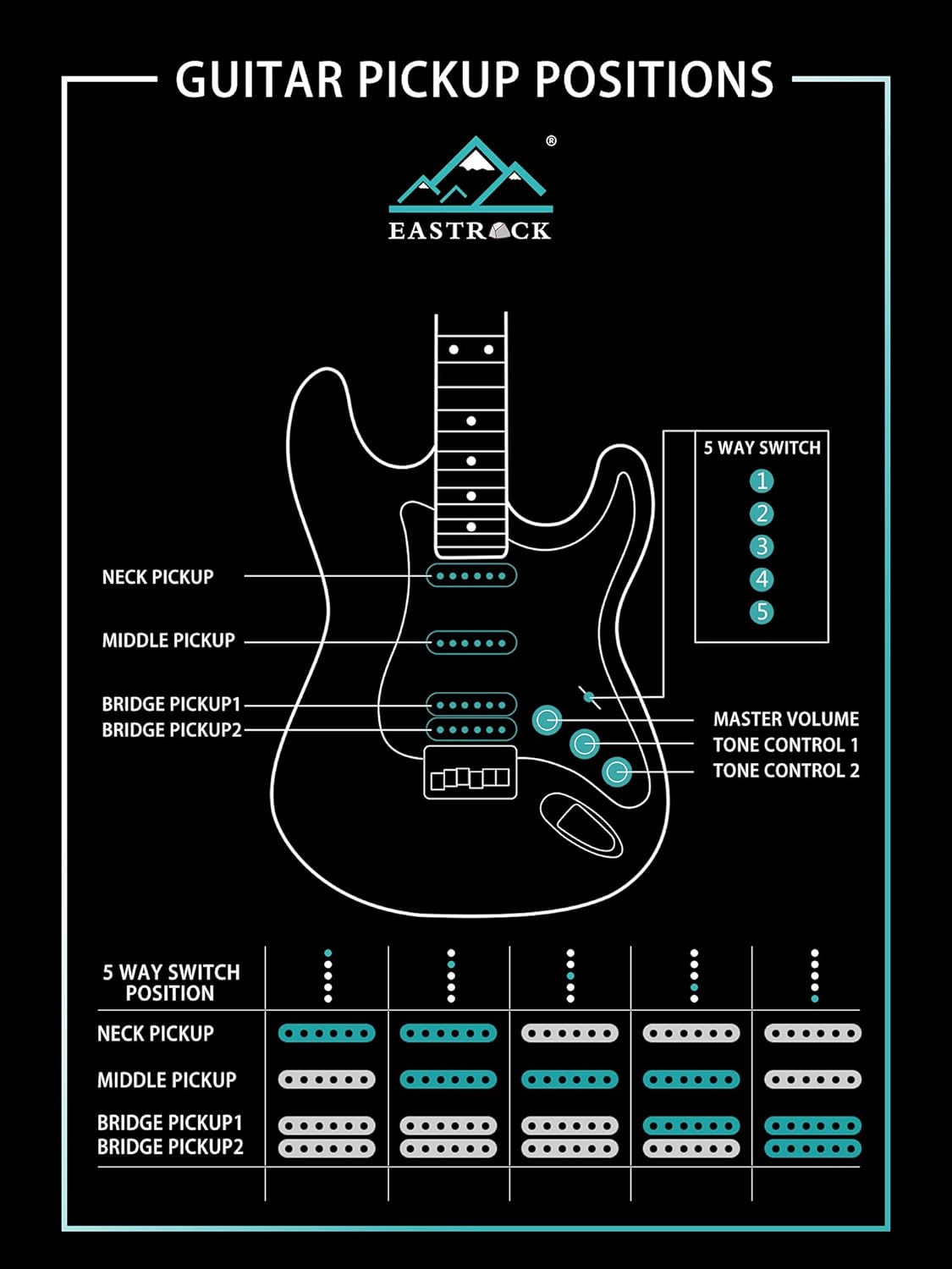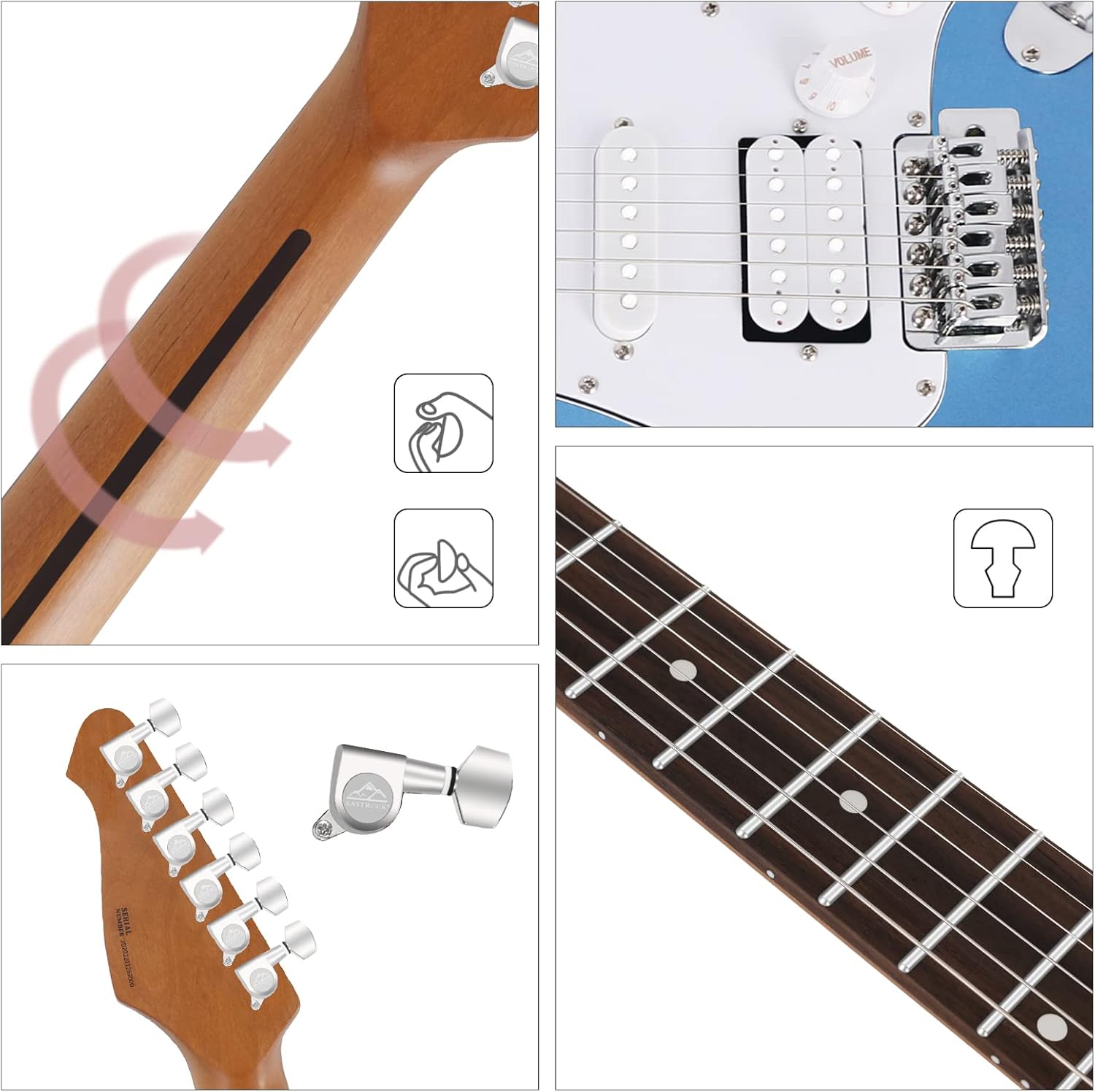 - Pastillas H-S-S: la guitarra eléctrica de 39 pulgadas es un kit de guitarra eléctrica ideal para niños y adultos a los que les gusta la guitarra, las pastillas H-S-S son perfectas para un sonido de blues/rock de Texas.