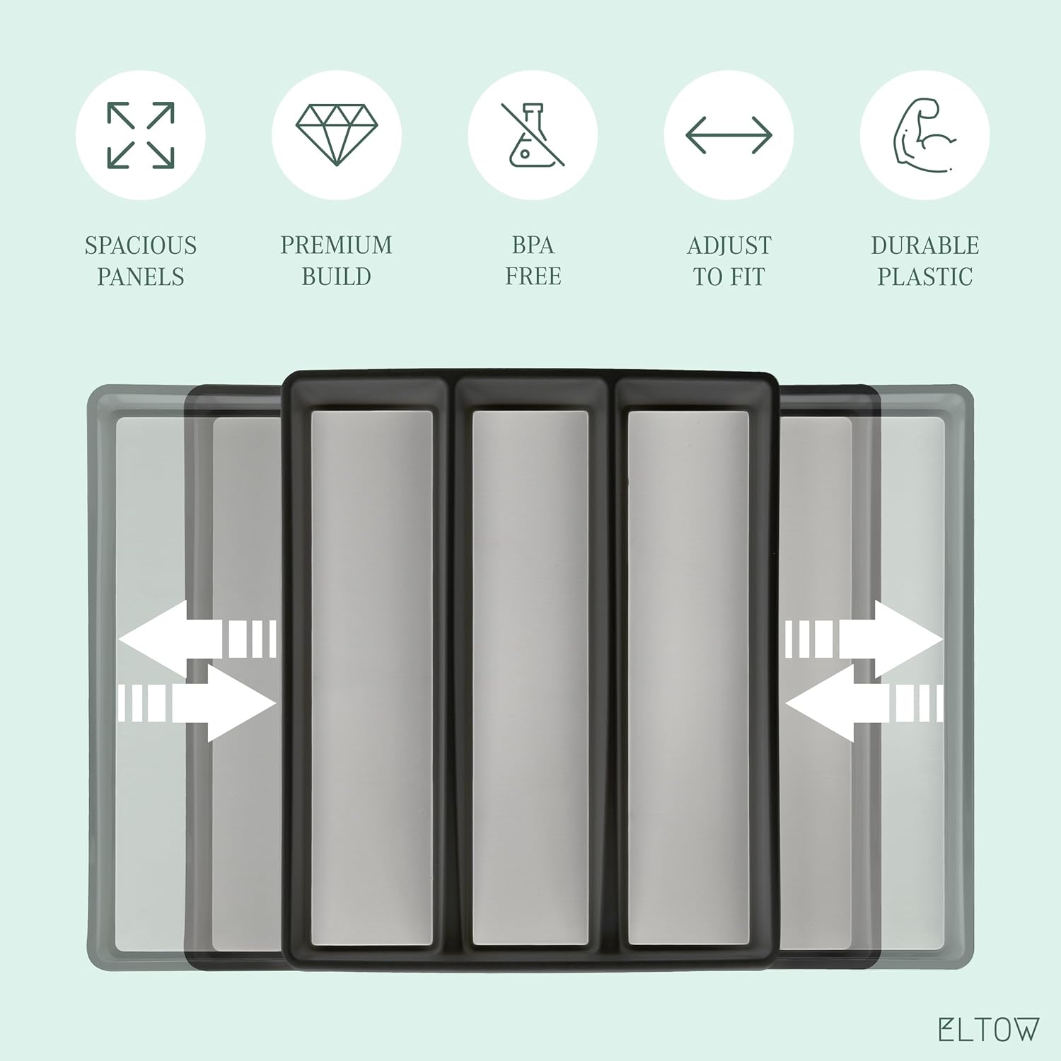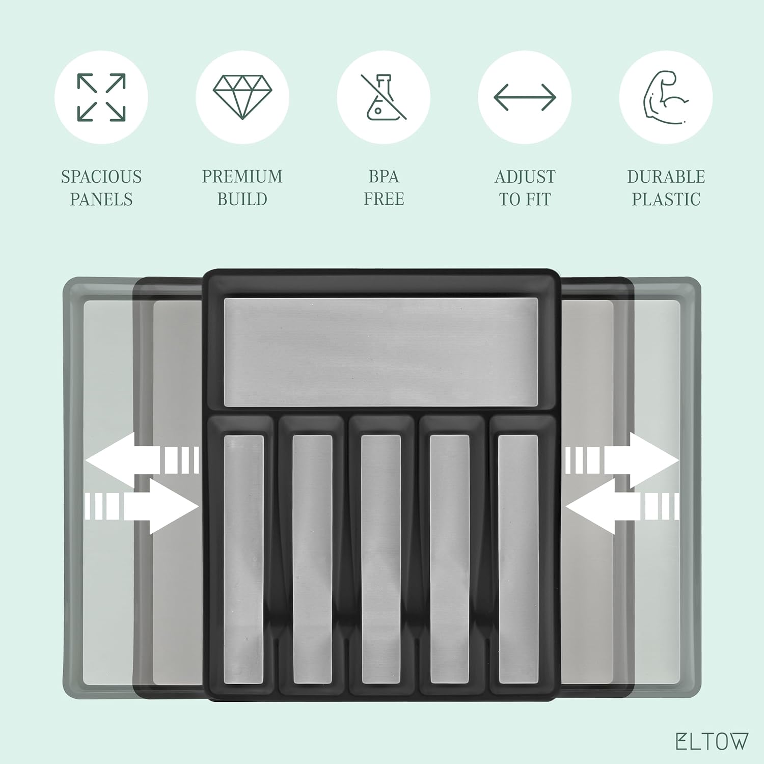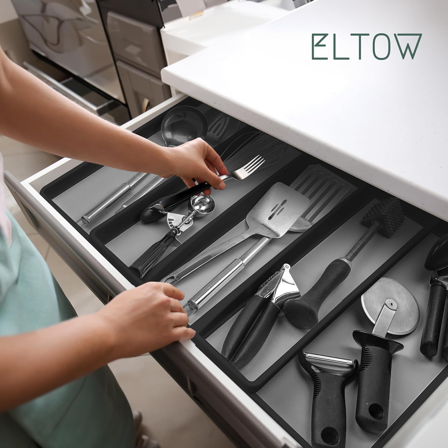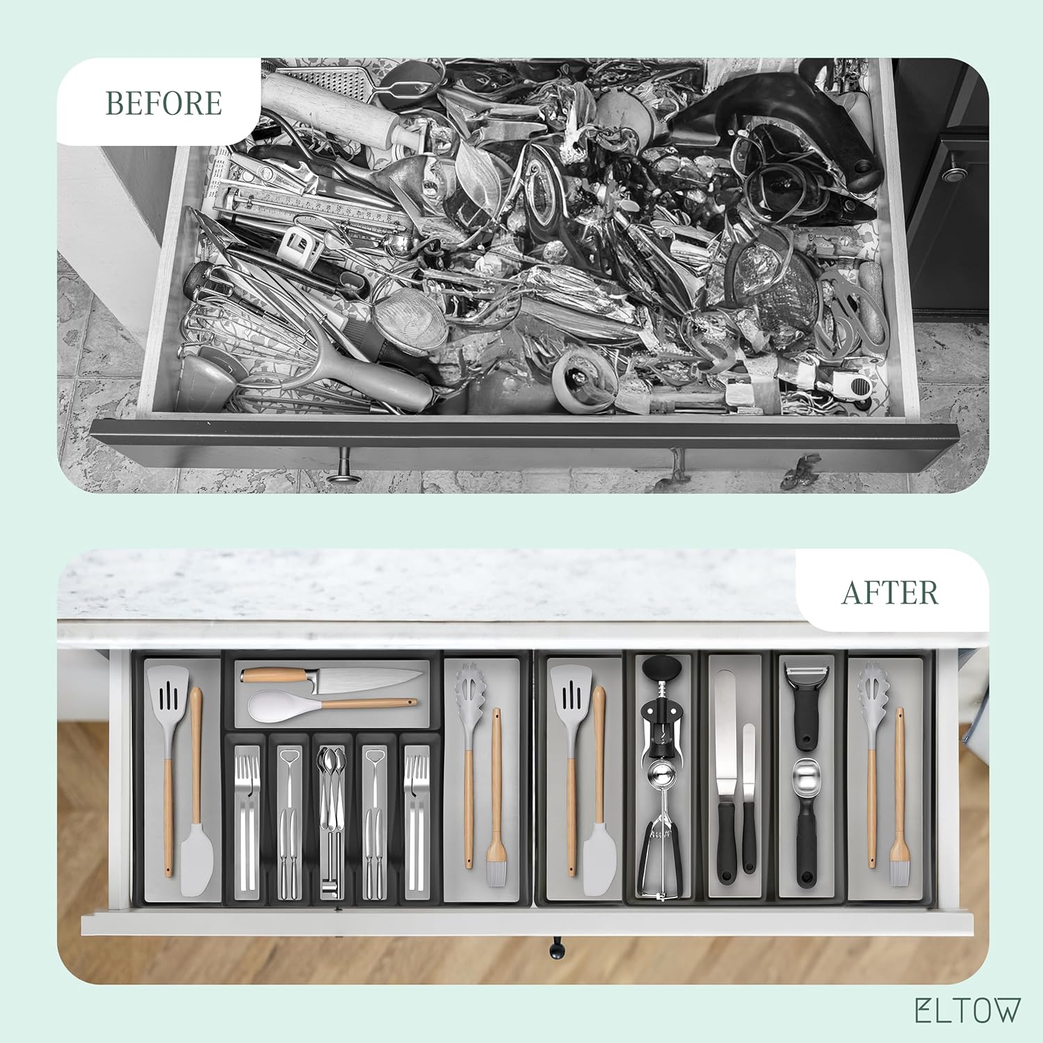 ELTOW - Juego de organizador de cajones y bandejas de utensilios expandibles, organizadores y almacenamiento de cajones de cocina, organización de cocina para utensilios, cubiertos, suministros de