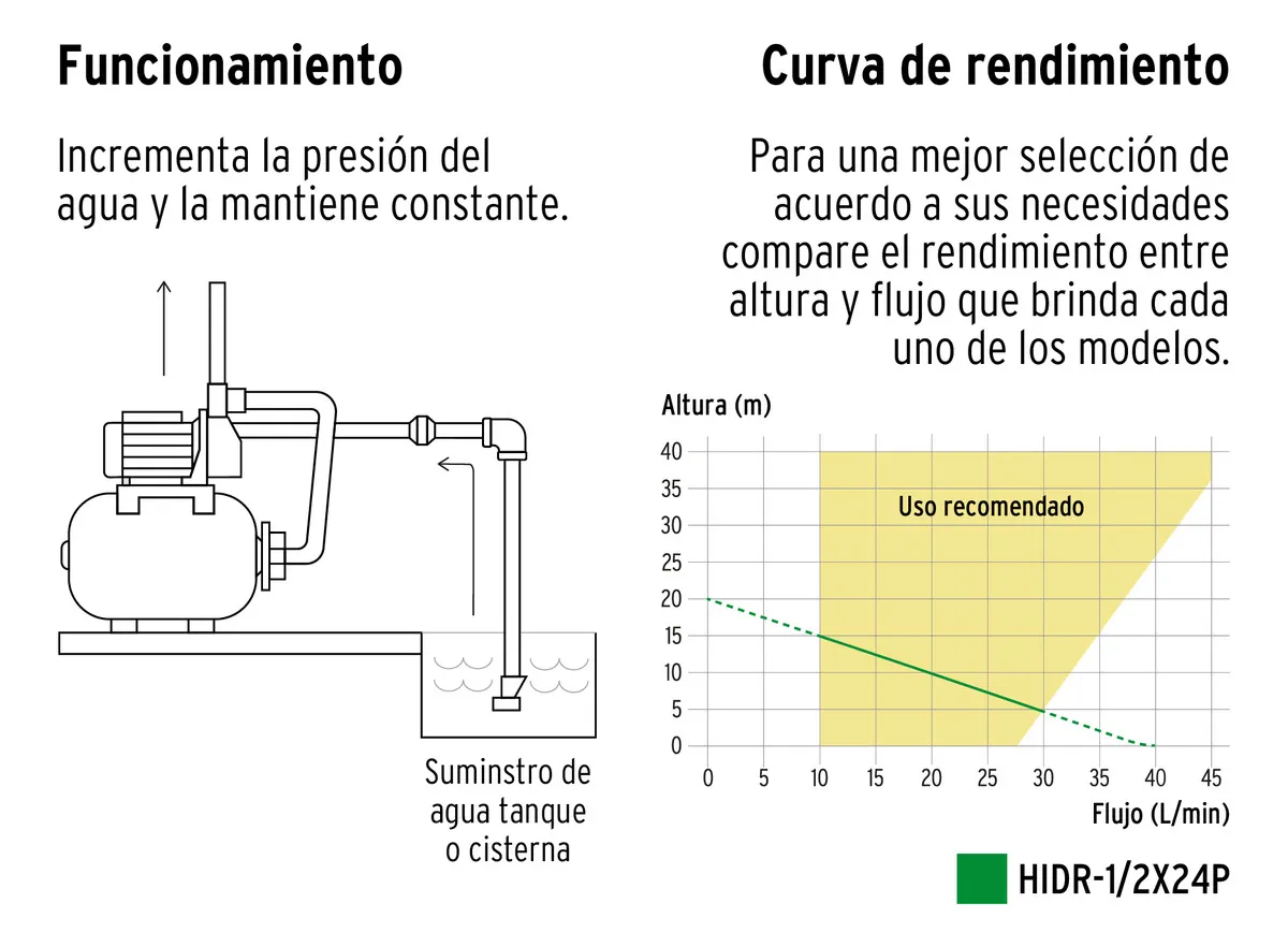 - Ideal para el aumentar el caudal de agua en casas o departamentos