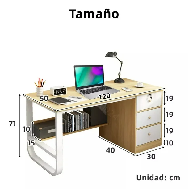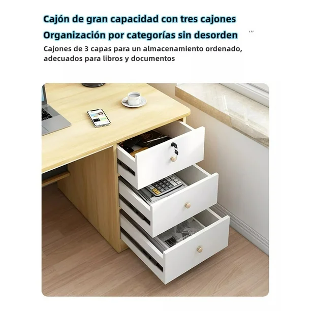 Escritorio de ordenador con cajones de 3 niveles es perfecto para el hogar, oficina, dormitorio, sala de lectura, sala de estudio, etc. 3 colores clásicos para elegir.