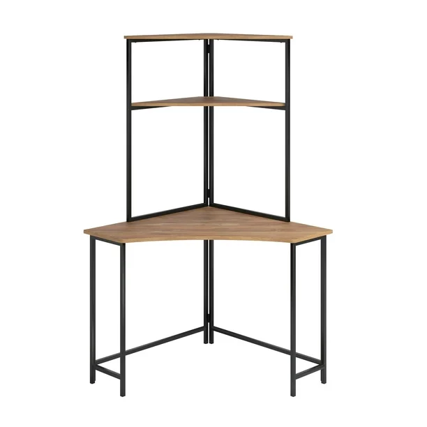 Este escritorio con estantes abiertos proporciona una estación de trabajo para su computadora portátil o computadora, para completar las tareas más importantes de la semana. Este soporte para computadora de esquina cuenta con un aparador para colocar su impresora, carpetas, libros y más, para que pueda usar su preciado espacio en el piso para otros artículos. Brinda tres niveles de almacenamiento y organización a cualquier habitación de su hogar.