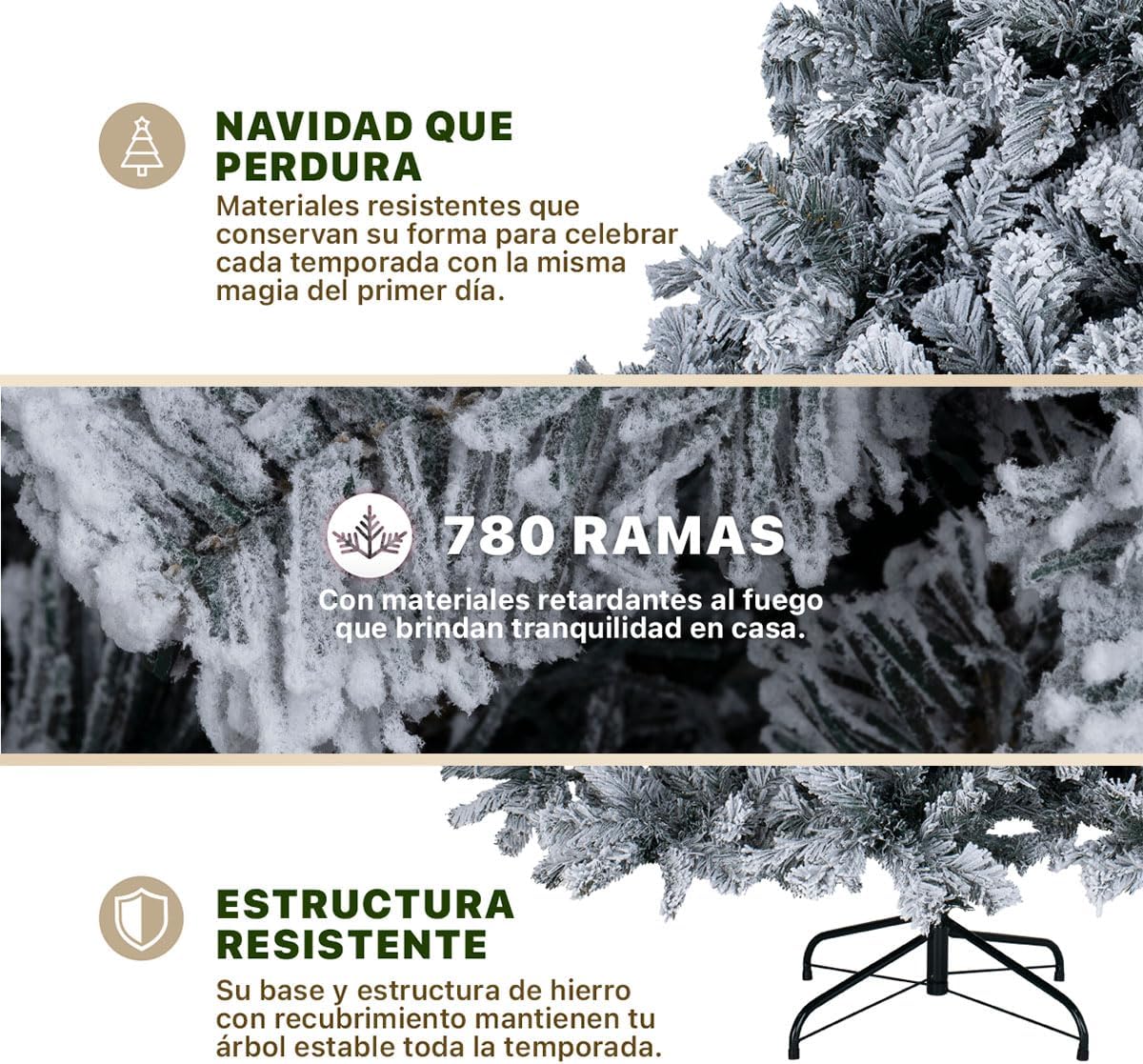 - INCLUYE: 1 Árbol de navidad nevado, estilo Cedro del Himalaya frondoso | Tamaño mediano: 1.80 x 1.15 m | 780 ramas de PVC.