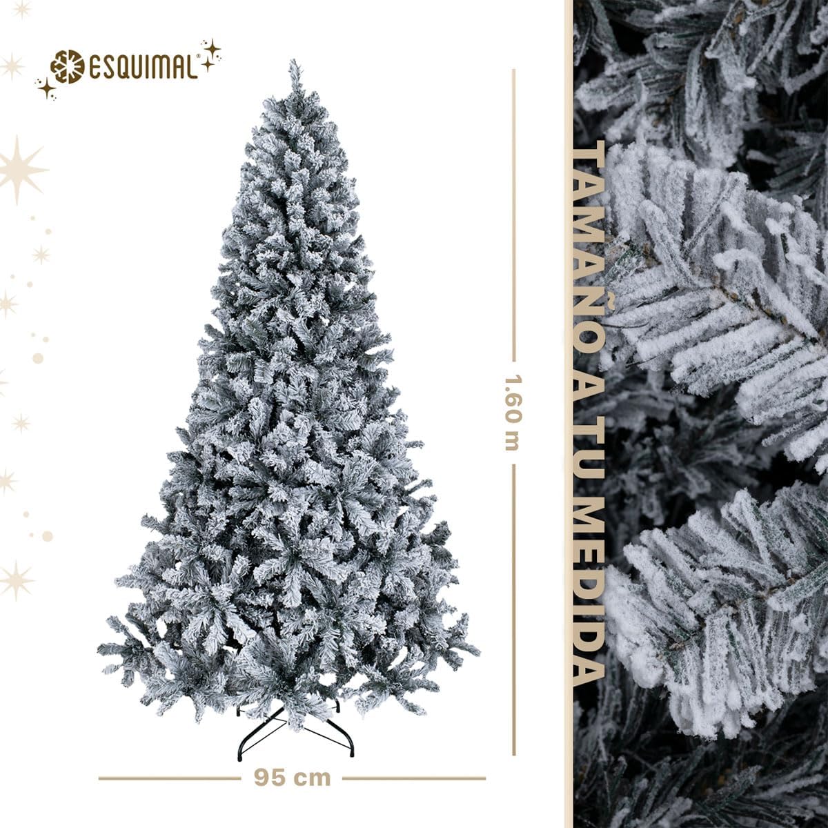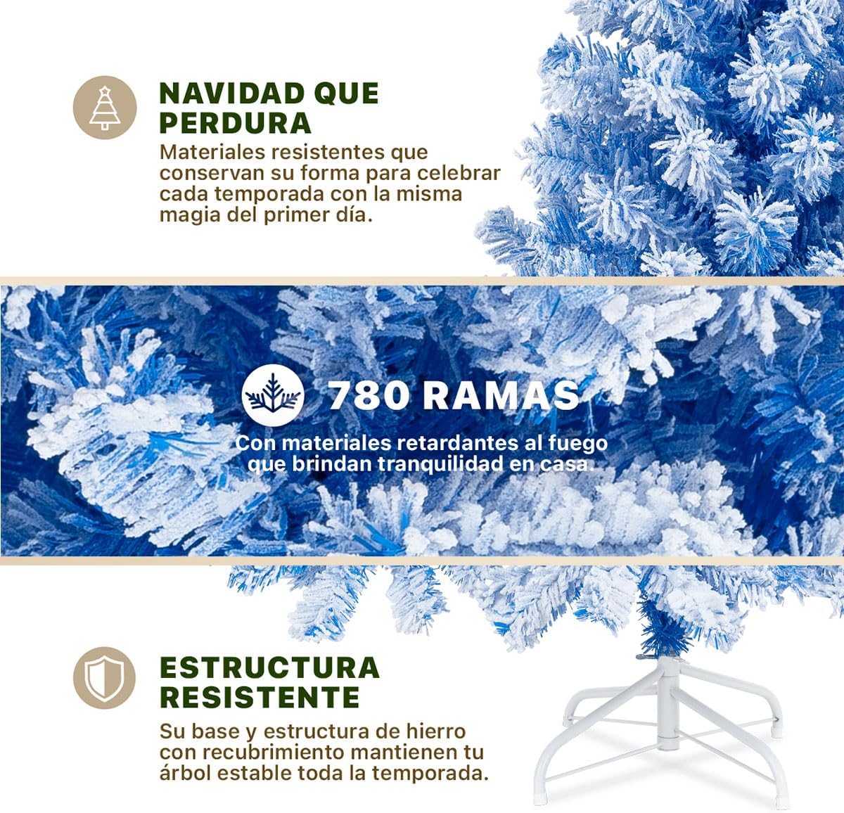 - DISEÑO RENOVADO: Su forma clásica de colores únicos y escarchado abundante en las ramas, permite transformarlo fácilmente con las tendencias de decoración navideña que prefieras, logrando que cada adorno luzca moderno en cualquier espacio. Además, la nieve artificial de nuestros árboles nevados está diseñada para aportar un efecto natural, por lo que durante la instalación es normal que se desprenda levemente sin afectar la apariencia de tu árbol. Elige entre nuestras variantes individuales y en set con estrella incluida.