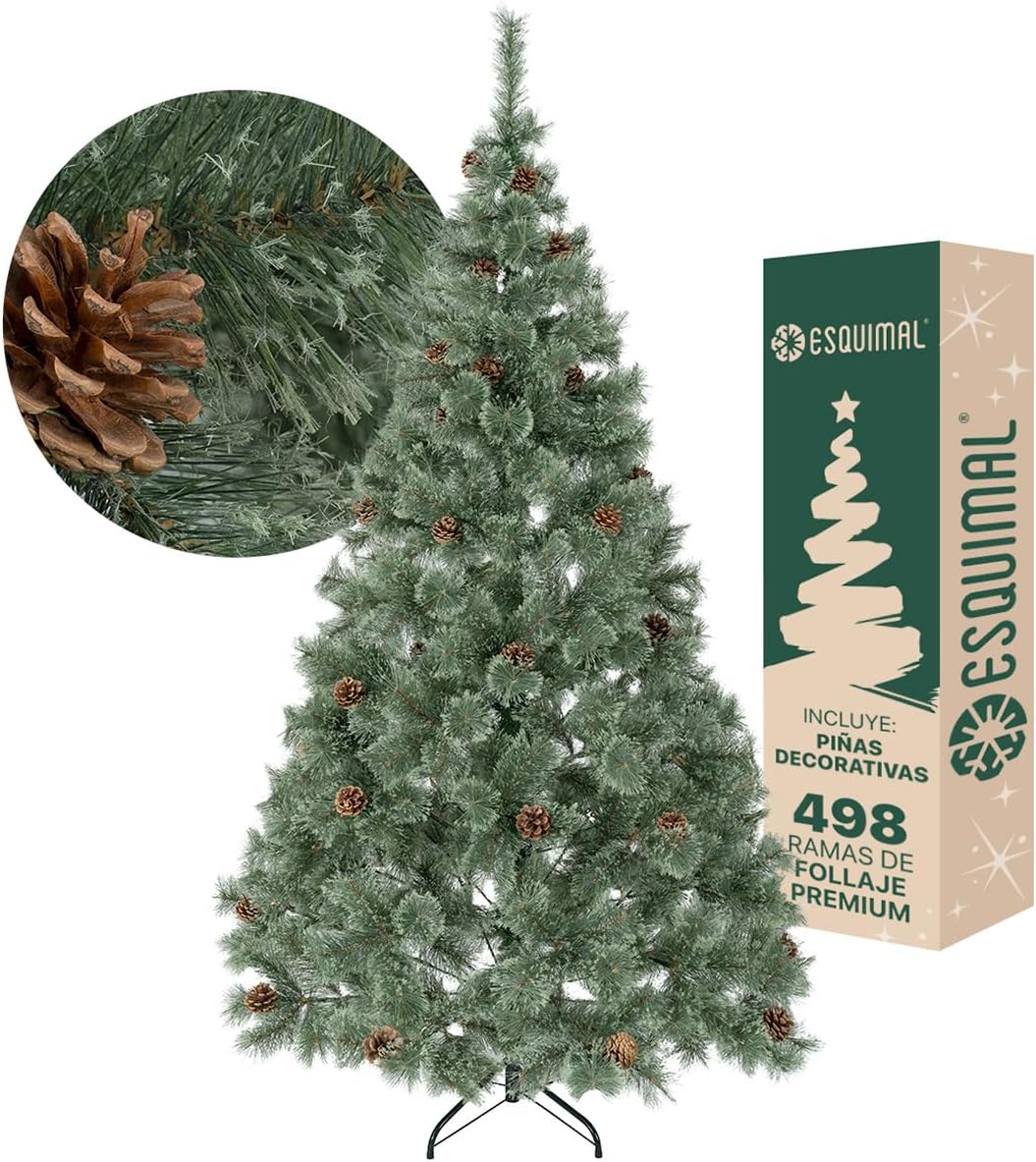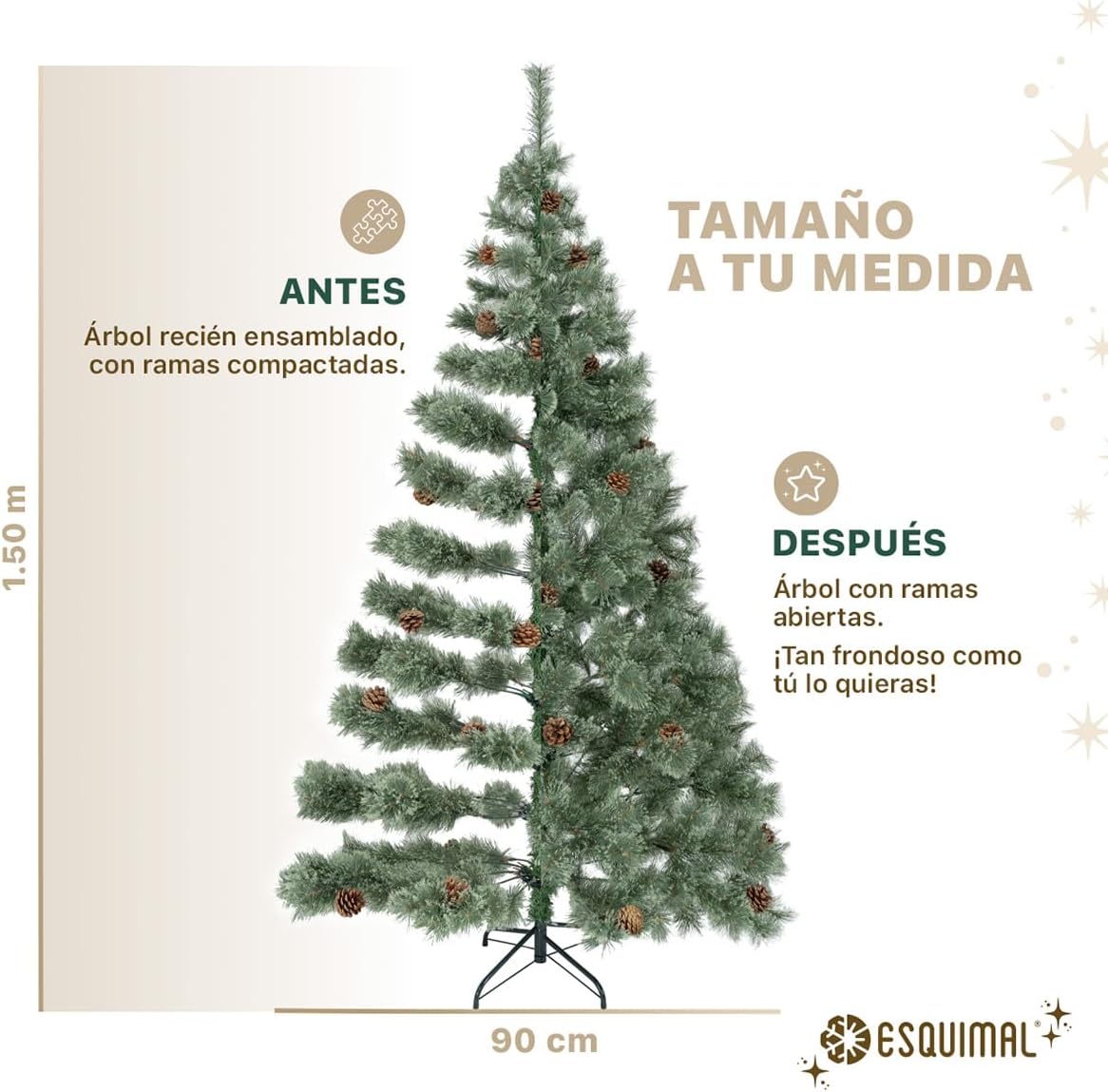 • INCLUYE: 1 Árbol de Navidad artificial, estilo Pino Blanco natural con Piñas | Tamaño grande: 2.20 x 1.15 m, 498 ramas de PVC