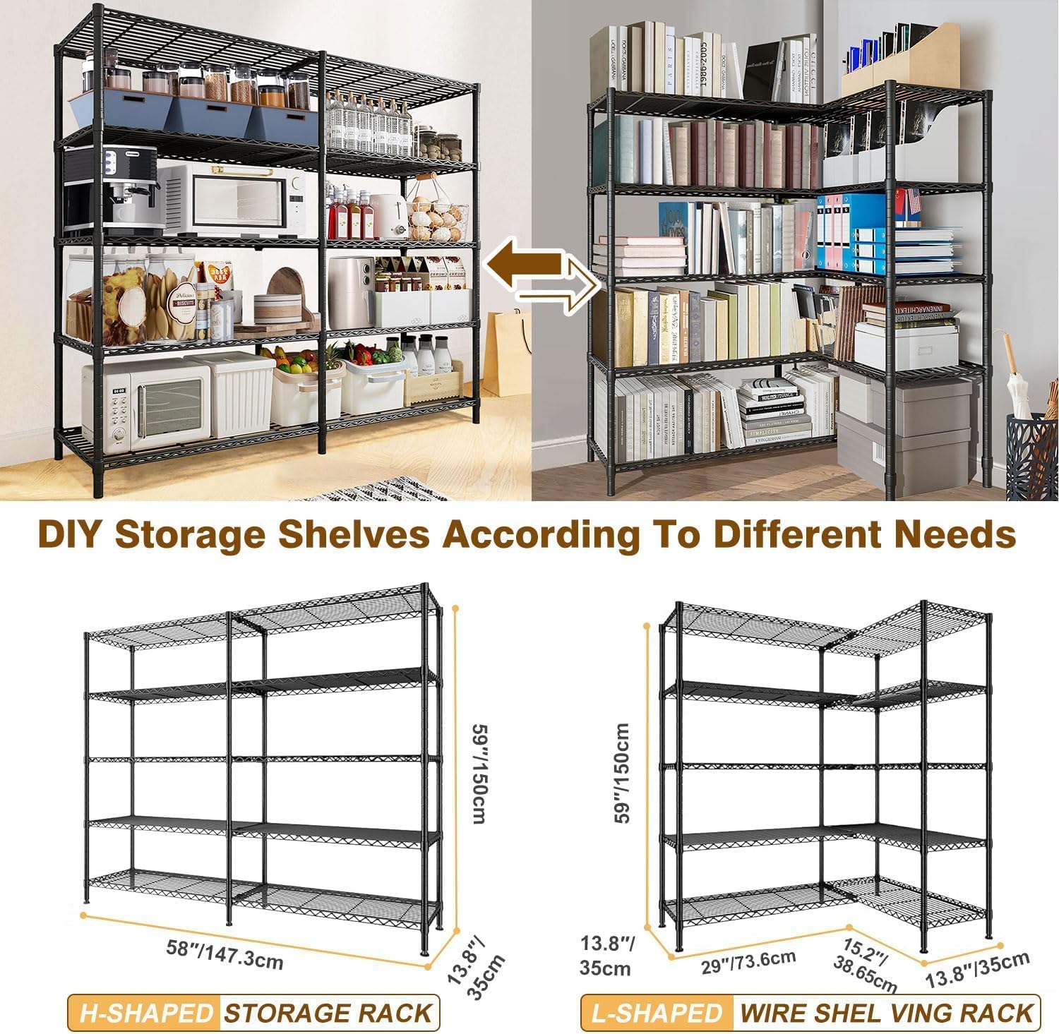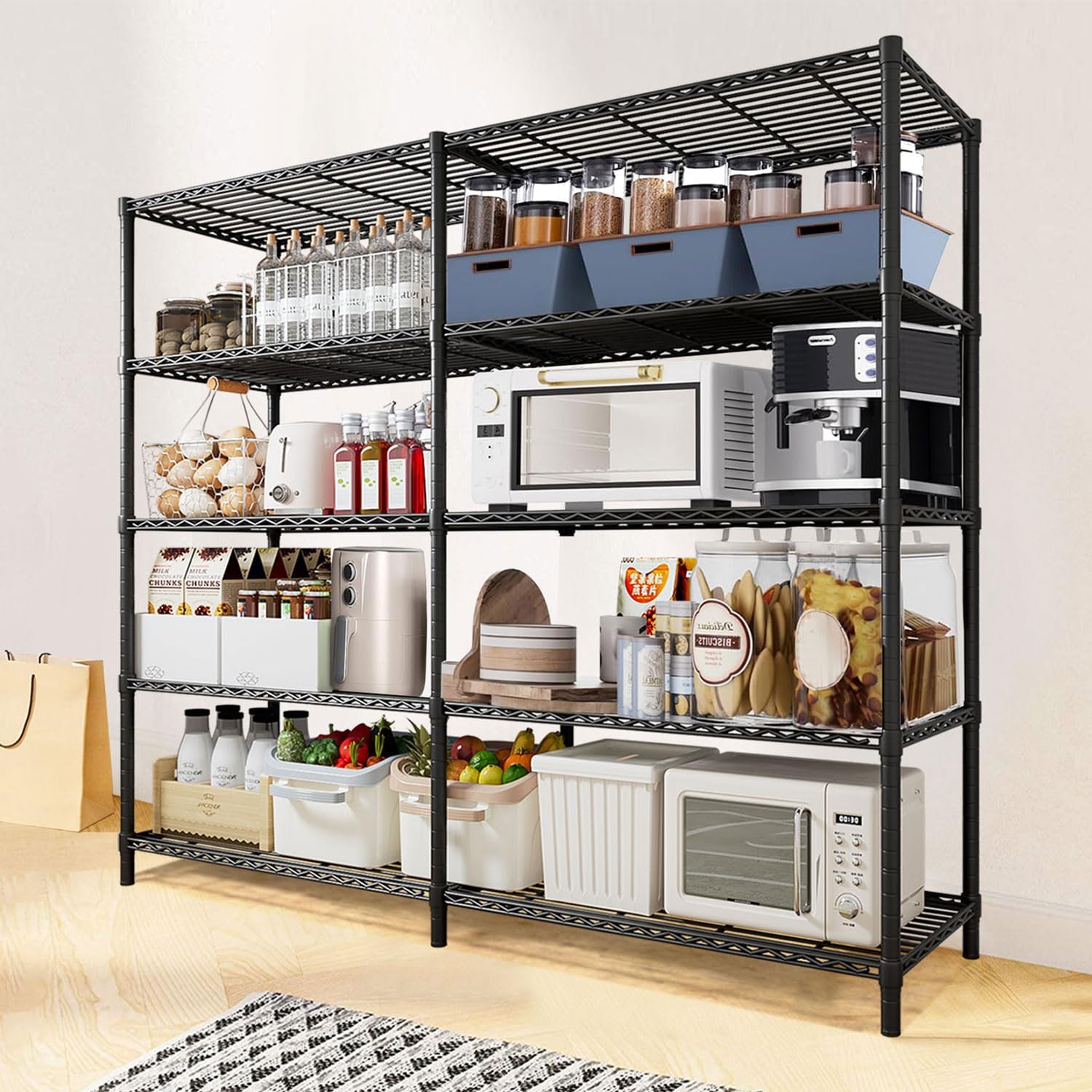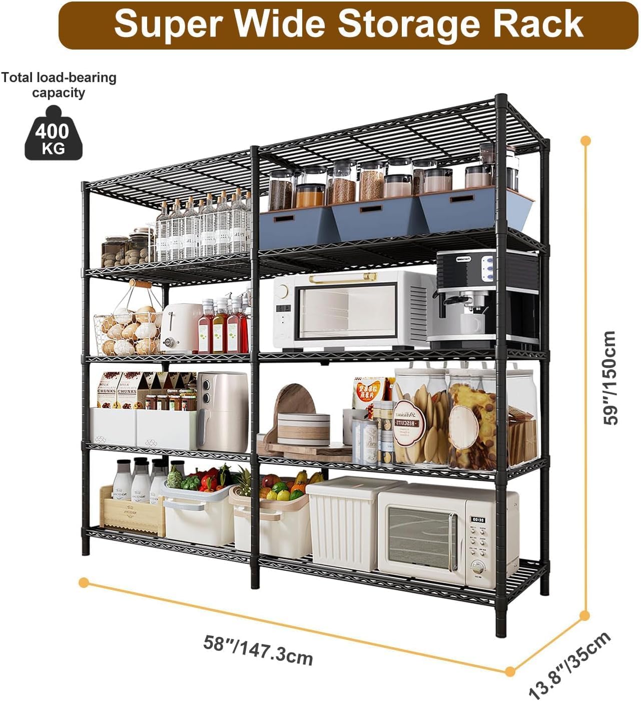 Estante de Almacenamiento de 5 Niveles,Metálico y Ajustable,Gran Capacidad,Estante Organizador para Cocina,Garaje,Supermercado,Negro (58" W x 59" H x 13.8" D)
