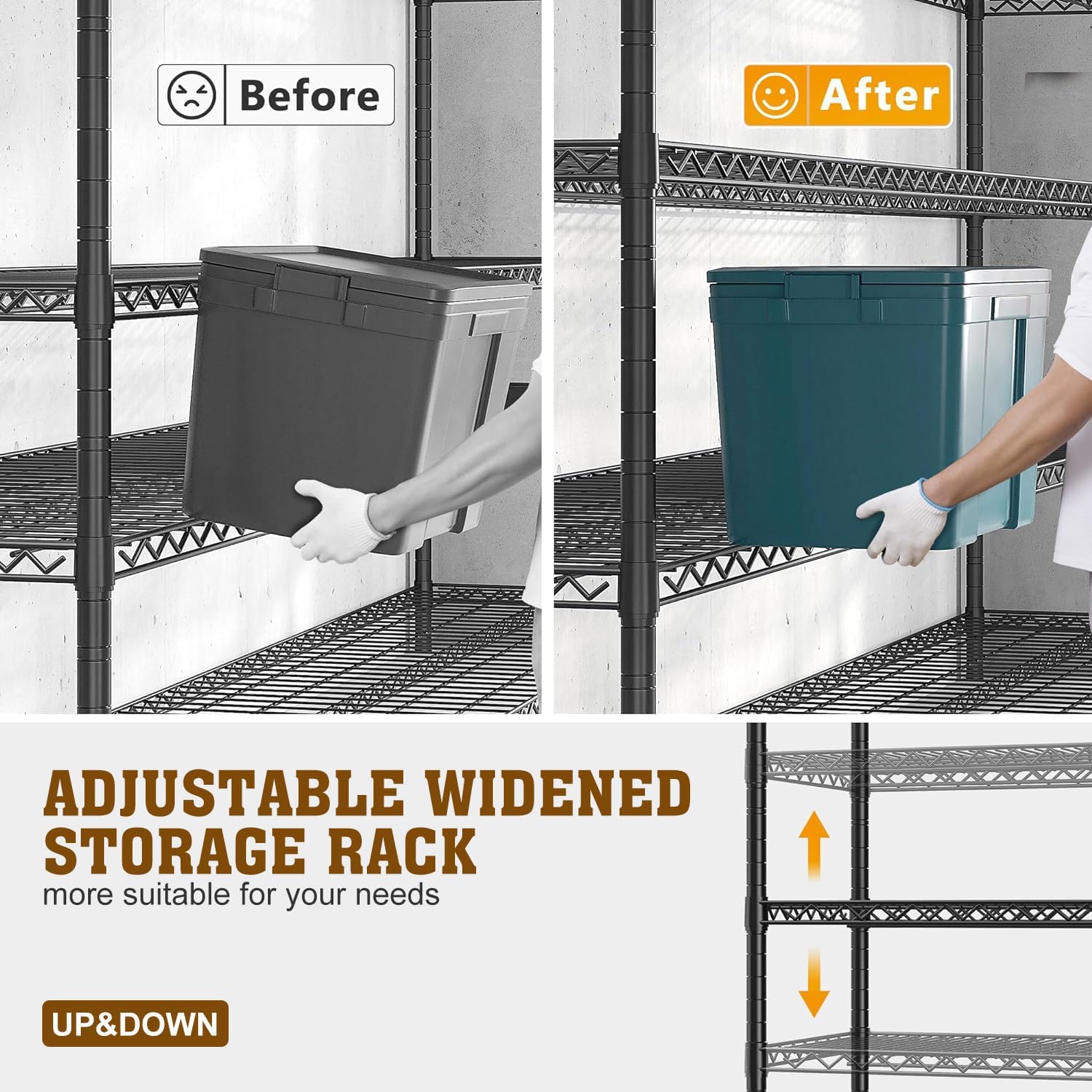 • 【Unidades de Estanterías】58" W x 59" H x 13.8" D,Uptyia Estante de Almacenamiento de 5 Niveles,Metálico y Ajustable,Gran Capacidad,Estante Organizador para Cocina,Garaje,Supermercado,Negro