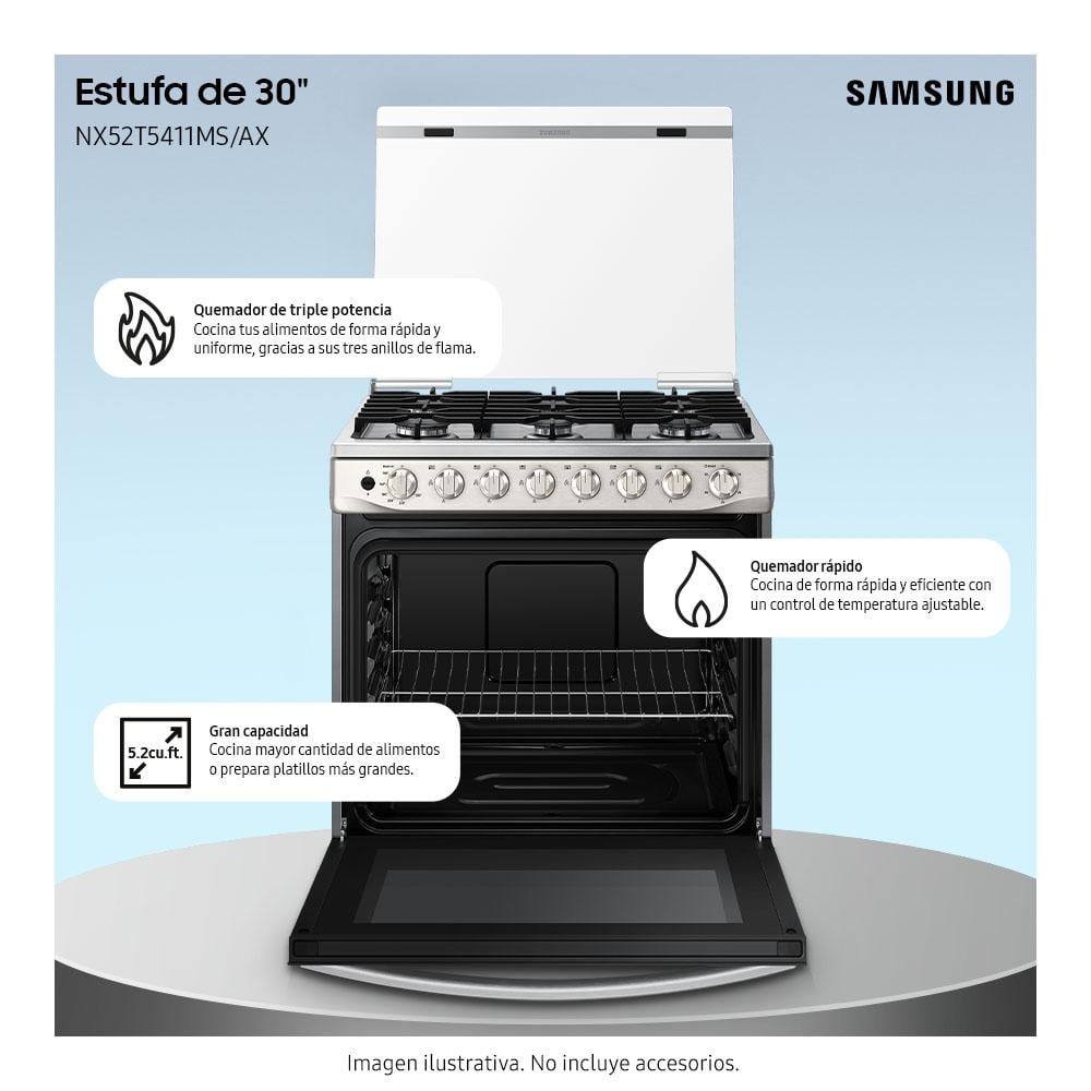 Cocción más rápida, incluso de grandes platillosCocina tus alimentos de forma rápida y uniforme con el poder del Quemador de triple potencia. Sus tres anillos de flama concéntricos producen calor multidimensional para que cocines todo lo que quieras en menos tiempo. Por su parte, el Quemador rápido permite una cocción más fácil y rápida, con control de temperatura ajustable. Lo mejor es que este modelo cuenta con 6 quemadores y un horno de gran capacidad para que puedas preparar múltiples platillos o de gran tamaño. ¡Renueva tu cocina con nuestras increíbles estufas! Diseñadas para ofrecerte la mejor experiencia culinaria, nuestras estufas de gas combinan funcionalidad y estilo. Disponibles en elegantes acabados de acero inoxidable, nuestras estufas no solo son duraderas sino también un complemento perfecto para cualquier cocina moderna. Ofrecemos una amplia variedad de modelos, desde estufas de 4 quemadores ideales para espacios más pequeños, hasta estufas de 6 quemadores perfectas para familias grandes. Además, nuestras estufas con horno te permiten preparar tus platillos favoritos con facilidad. Si estás buscando una opción económica y eficiente, nuestras estufas de bajo consumo son la elección ideal. Y con nuestras estufas inteligentes, controlar la cocción de tus alimentos nunca ha sido tan sencillo. ¡No esperes más para mejorar tu cocina! ¡Sólo en tu Tienda en Línea y directo hasta la puerta de tu hogar!