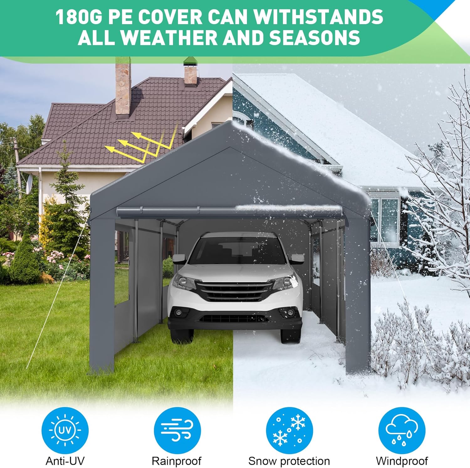 • Protección para todas las temporadas: protege tus vehículos durante todo el año con la cubierta impermeable de 180 g hecha de tela de polietileno grueso. Ya sea frente al sol, la lluvia, el polvo, el granizo o la nieve, esta lona de materiales para todas las estaciones ofrece una protección confiable contra los elementos.