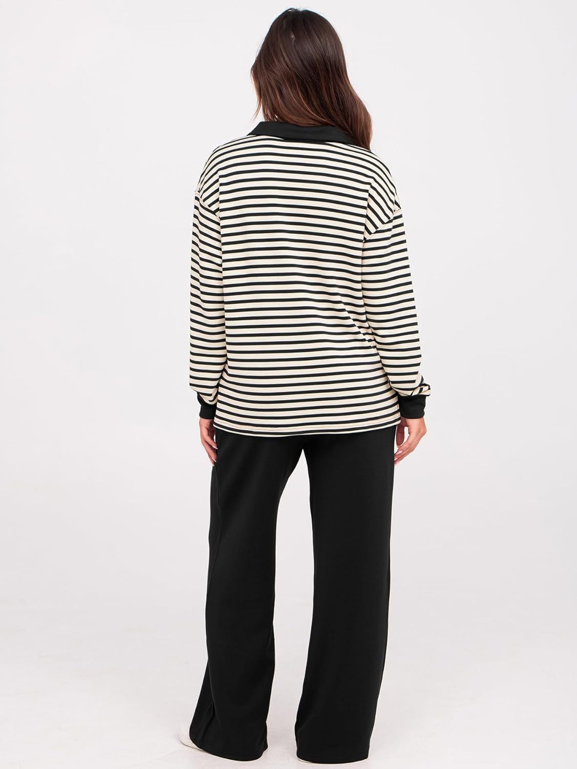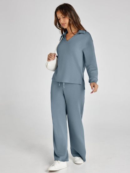 Glamaker - Conjunto de 2 piezas para mujer, estilo casual, manga larga, sudadera tipo polo y pantalones anchos a juego
