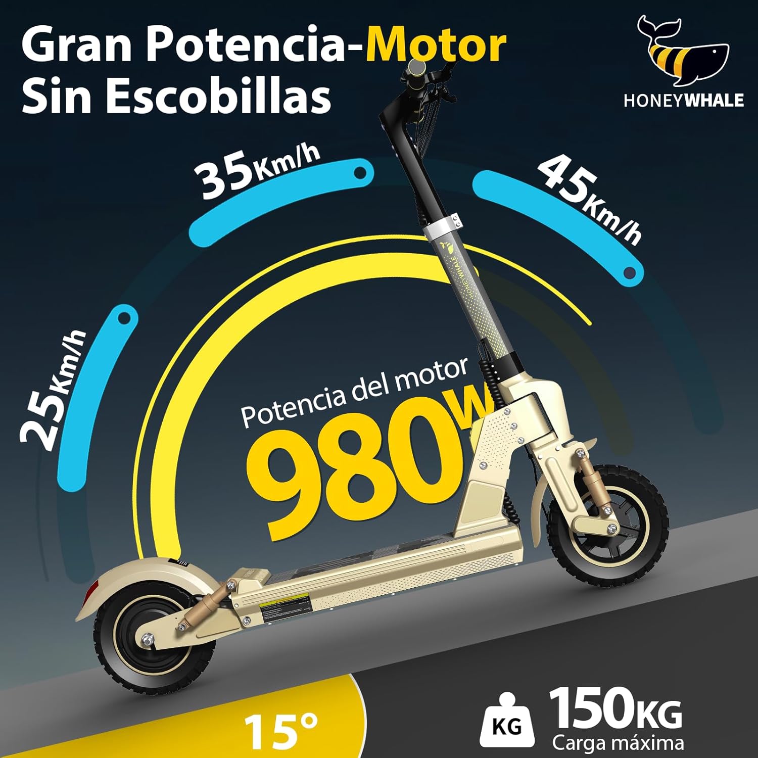 - 【Gran potencia】La scooter eléctrico C1 de Honey Whale tiene un rendimiento potente y una sensación de conducción impresionante. El motor sin escobillas de 980W/48V admite una velocidad máxima de hasta 45 km/h. Con una batería de gran capacidad de 13AH, la autonomía a plena carga puede recorrer de 35-40 km, suficiente para satisfacer las necesidades básicas de viaje diario a corta distancia. (La autonomía depende del peso del usuario, la velocidad de conducción y las condiciones del camino.)