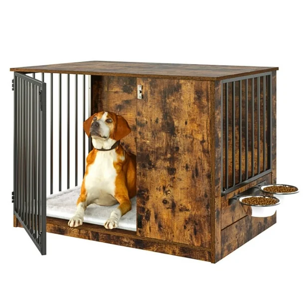 • MU:4LIFE Jaula Estilo Mueble para Perros, Puerta de Rotación 270°, 2 Tazones de Giratorios 360° y Cojín de Doble Cara. Casa de Perro de Uso Interior y Alta Resistencia - Gran Tamaño: Mide 91.5 cm de largo x 59.8 cm de ancho x 64 cm de alto. La cama soporta hasta 45 kg y cuenta con un cojín de doble cara, ideal para razas medianas de perros. - Tazones Giratorios 360°: Incluye 2 tazones de acero inoxidable con función giratoria de 360 grados, lo que permite que el perro pueda comer tanto dentro como fuera de la jaula. - Fuerte y Resistente: Estructura de tubo de acero resistente y paneles de MDF, lo que ofrece una mayor durabilidad y seguridad para las mascotas. - Tapa de Mesa Auxiliar: Diseño multifuncional que también funciona como mesa auxiliar, soporta hasta 60 kg y cuenta con espacio adicional para almacenar suministros para mascotas. - Estilo Mueble: Su diseño minimalista se integra perfectamente en el hogar. La puerta con rotación de 270 grados permite transformar la jaula fácilmente en una cama cómoda para el perro.