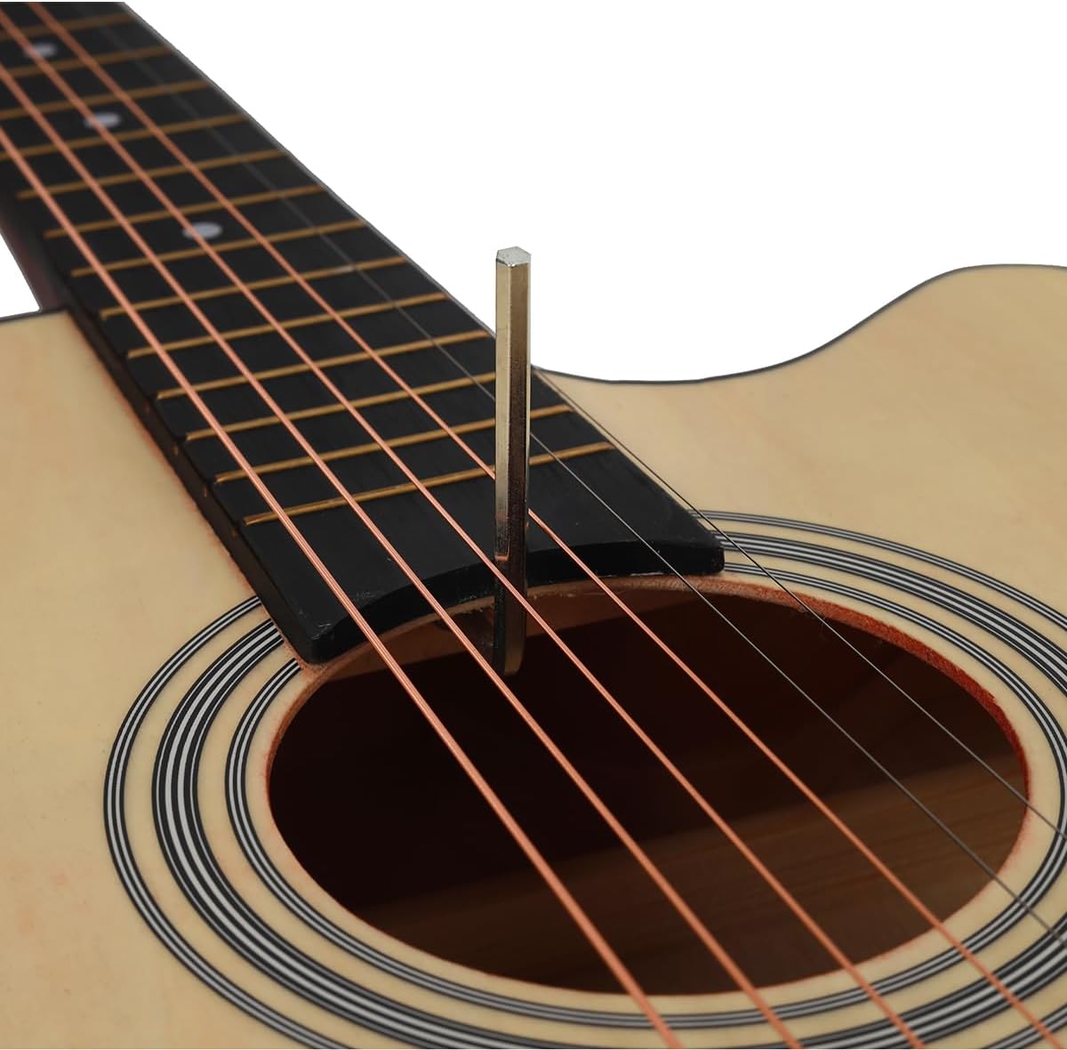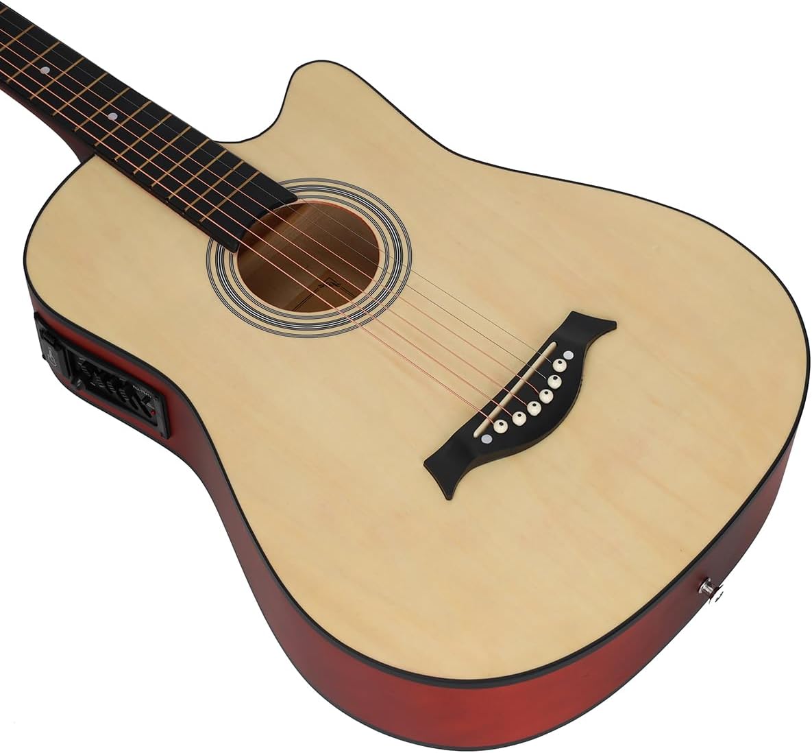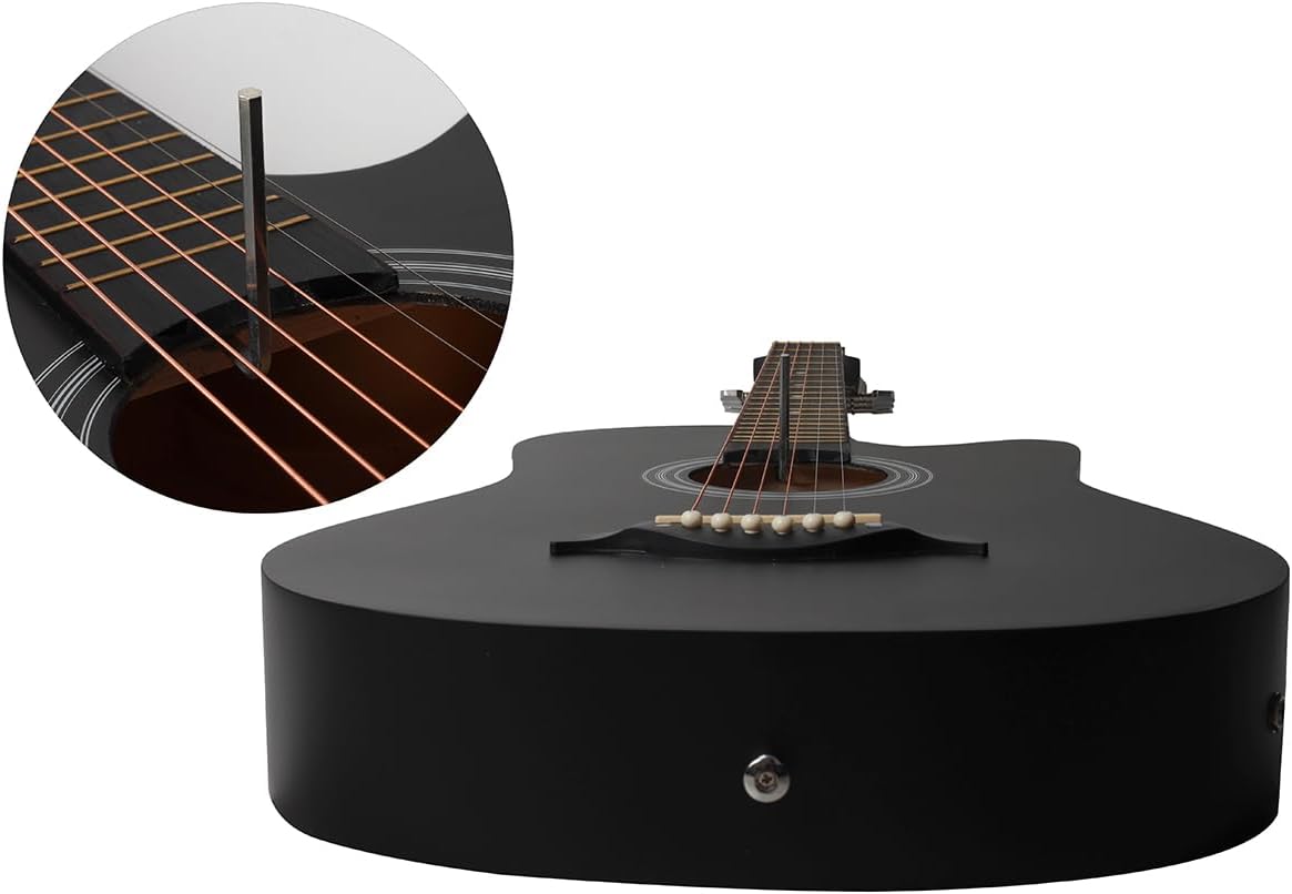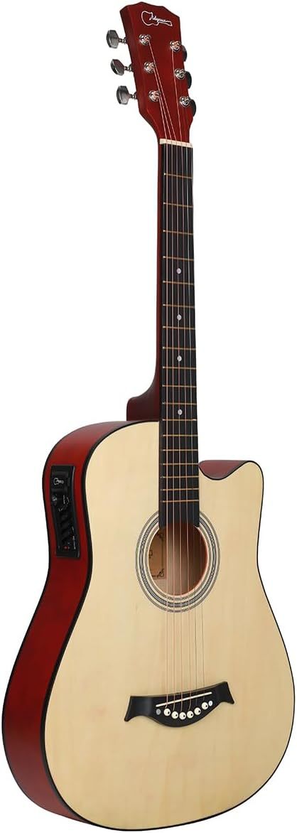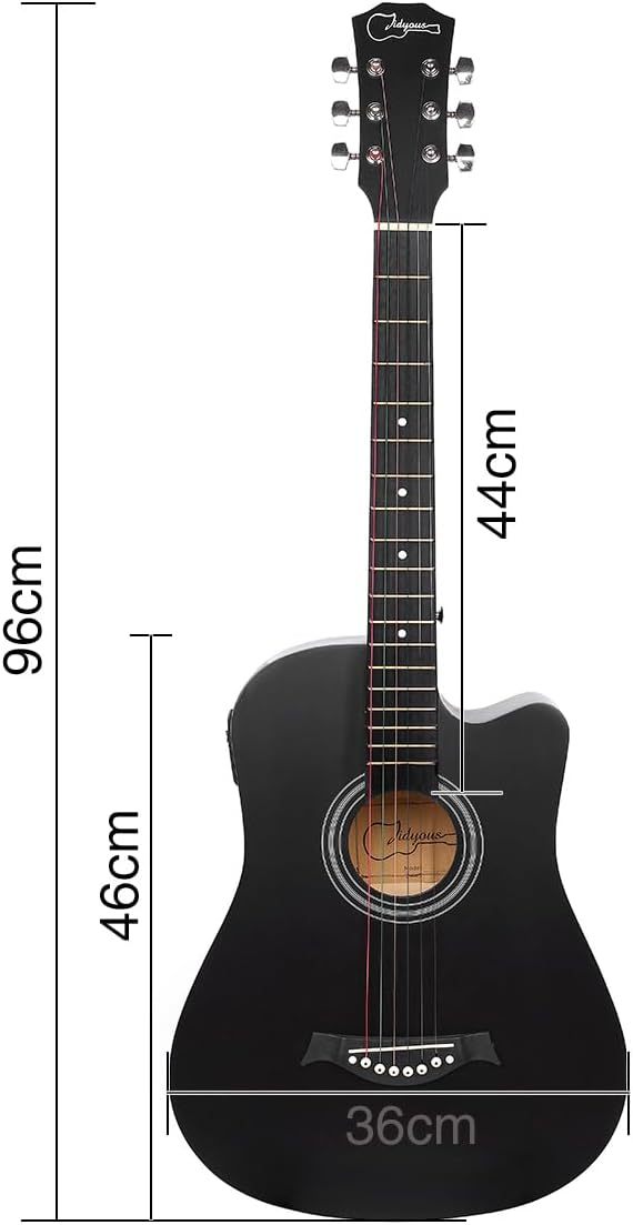 Accesorios Completos: 1 x 38In guitsrrsas electroacustica 1 x Sintonizador 1 x Funda para guitarra 1 x Correa 3 x Púas de dedo 1 x Paño de limpieza 1 x Juego de cuerdas de metal de repuesto 1 x Capo Especificación: Tamaño: 38 pulgadas con 6 cuerdas Material del cuerpo: Tilo Material del diapasón: Tilo Guitarra: Guitarra Material de las cuerdas: Cuerdas de bronce rojo, cuerdas metálicas Tamaño Guitarra: 965 mm de altura Peso Guitarra: 2,3 kg Personas adecuadas: niños, estudiantes, adultos