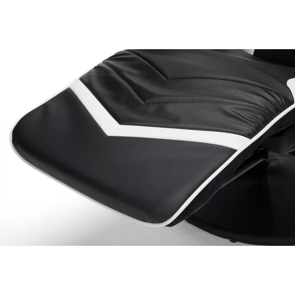 SUPERFICIE CONTINUA CON CONTROLES INDEPENDIENTES. La silla y el reposapiés son una superficie continua, sin espacios abiertos donde se puedan enganchar cables, sino que funcionan de forma independiente para brindarte un control total sobre tu experiencia de juego en la silla.