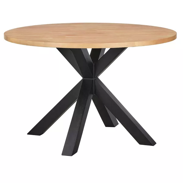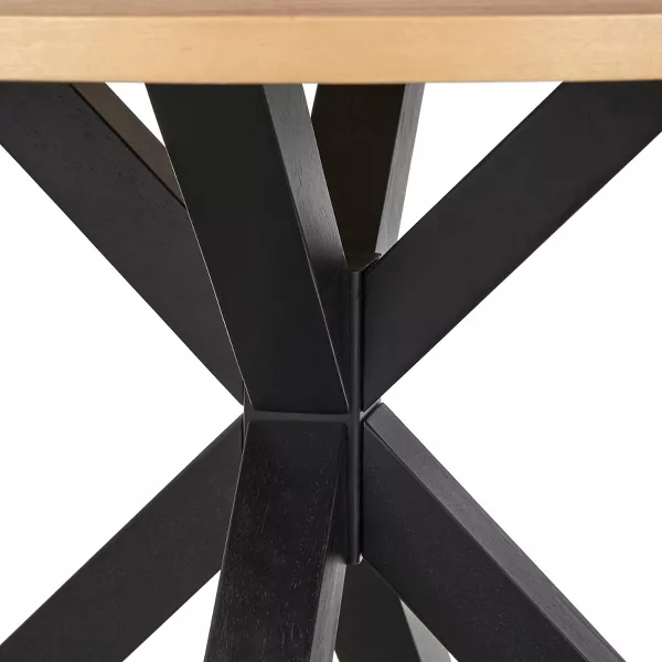 Two-tone finished table features cross-pedestal base; 30mm thick tabletop