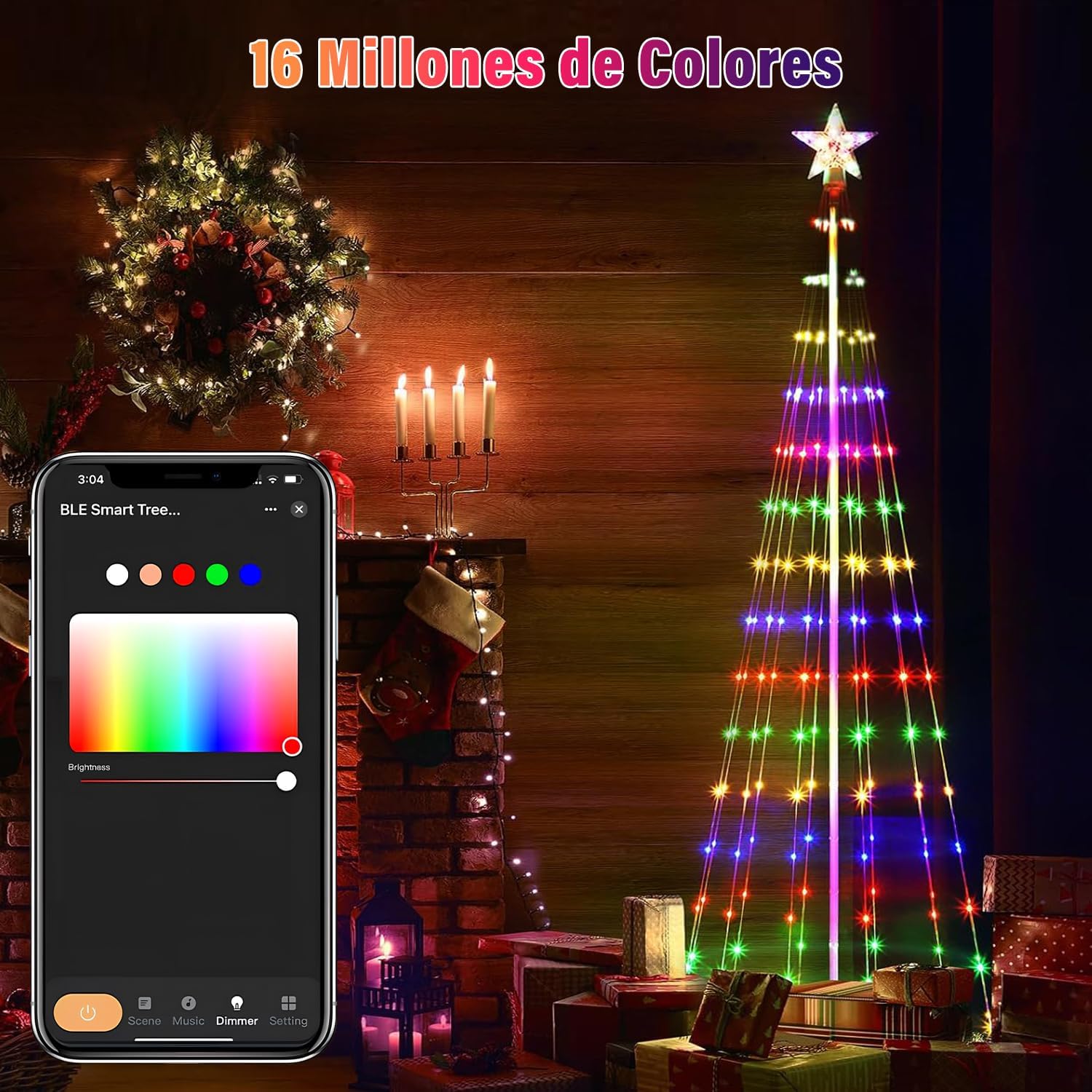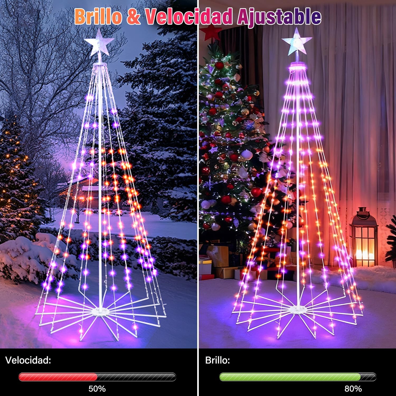 • Luces inteligentes para árbol de Navidad: Con 16 millones de luces monocromáticas y una variedad de combinaciones de colores preestablecidas, puedes personalizar el color, el brillo, la dirección y la velocidad de cada LED. El maravilloso espectáculo de luces es perfecto para decoraciones navideñas al aire libre