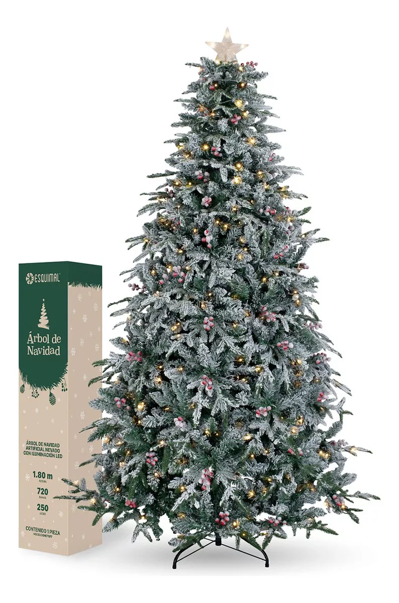 ¡El Árbol de Navidad Nevado con Luces LED ESTRELLA + BAYAS de 1.8 m de alto es parte de nuestra colección navideña Esquimal! Diseñados especialmente para que decores tu hogar como siempre imaginaste.