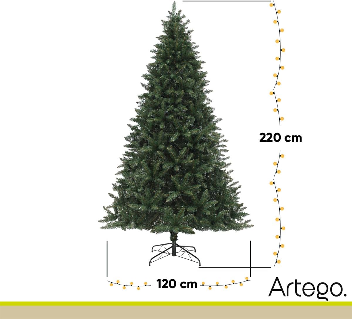 • **Ancho de árbol de rama a rama en la parte más ancha: 120cm